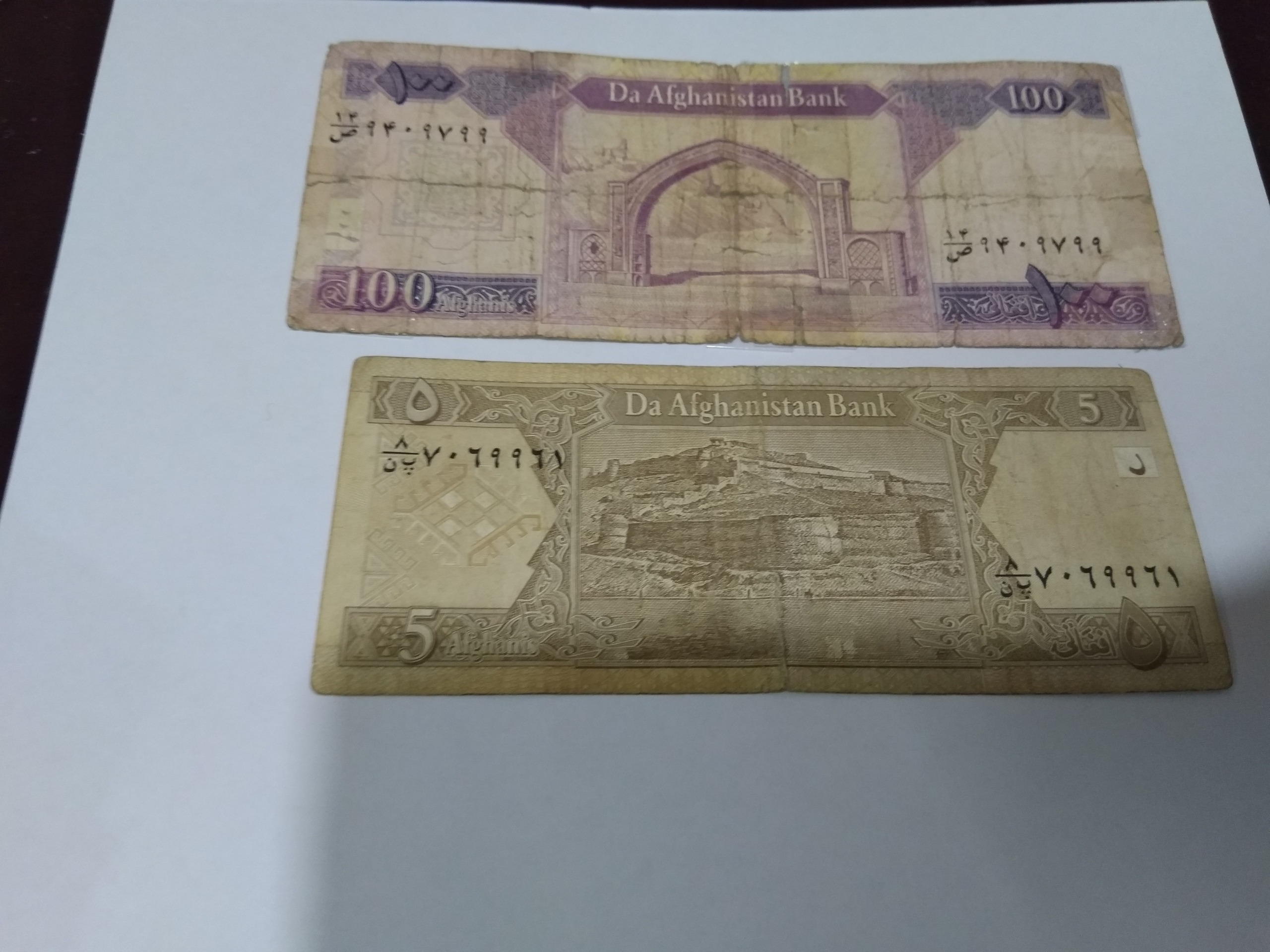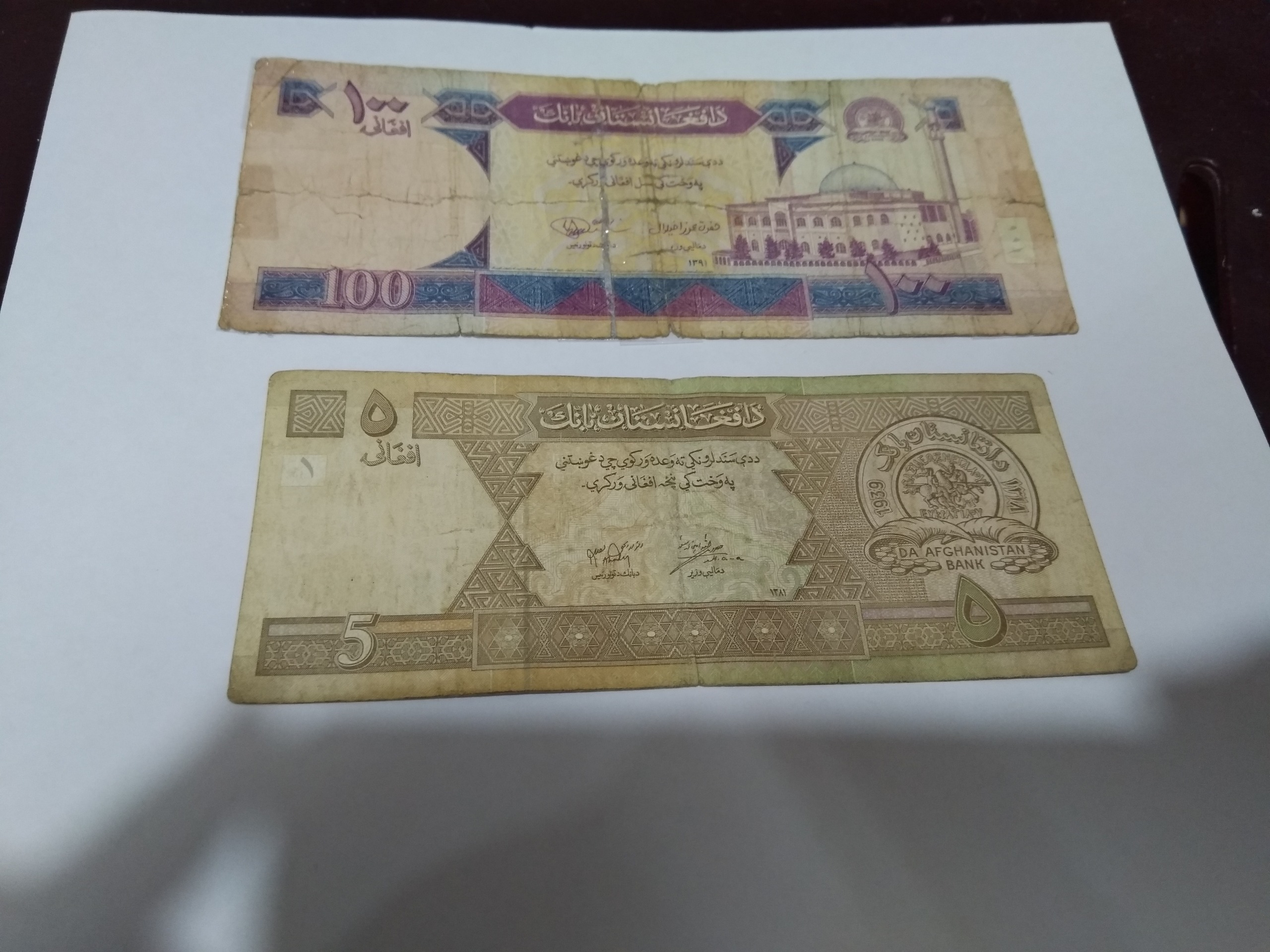 ، دو عدد اسکناس قدیمی افغانی یکی چسب خورده است،طبق تصویر ارسال می شود،با تشکر