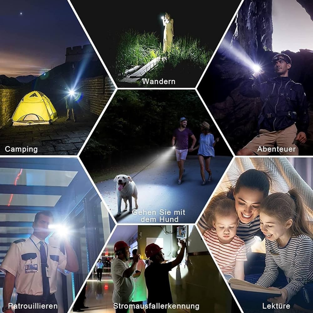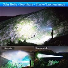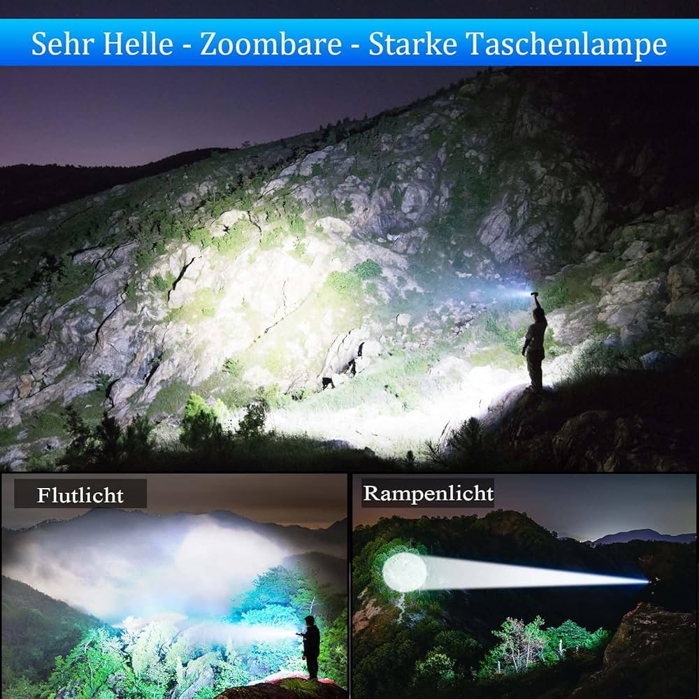 زوم: برای دستیابی به اثر نورافکن برد نزدیک و روشنایی فوکوس از راه دور، استفاده آسان، در تاریکی کامل، این چراغ قوه در حالت سیل میتواند تقریباً 500 متر مربع از کارخانه را روشن کند، در حالت فوکوس میتواند 1800 متر دورتر از علائم جاده را روشن کند، اثر نور قدرتمند برای کار ضروری است. در شب برای پیادهروی یا پیادهروی، با سگ، گشتزنی و واکنش به موارد اضطراری افراد باید داشته باشند.