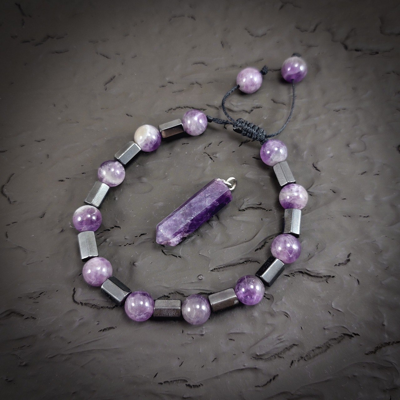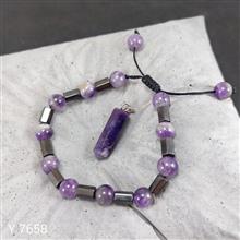 زیبا و خوشرنگ؛ شامل آویز منشور آمتیست و دستبند فریسایز آمتیست و مگنت؛ به همراه زنجیر استیل 40 سانتیمتری رایگان