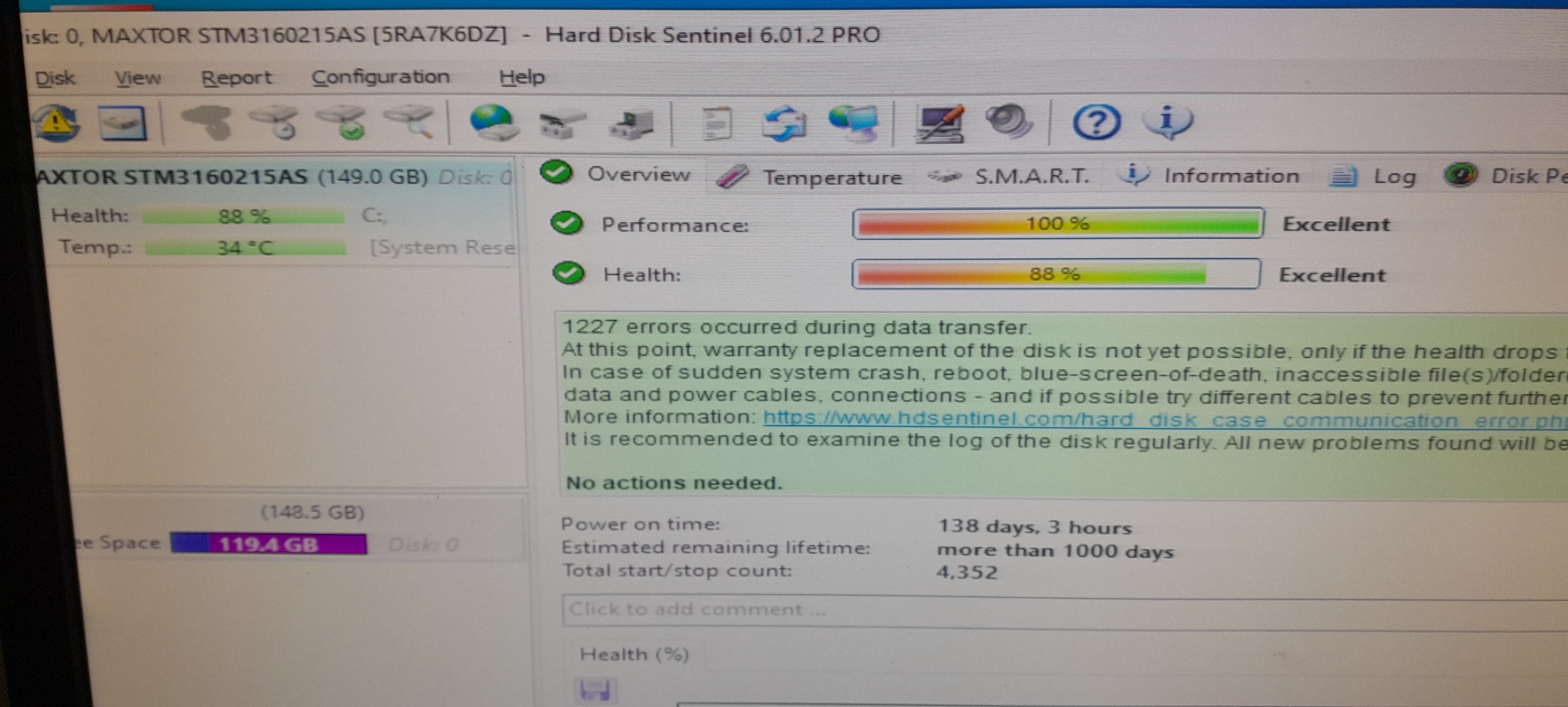 هارد 160 گیگ سیگیت هلث هارد 88 درصد
