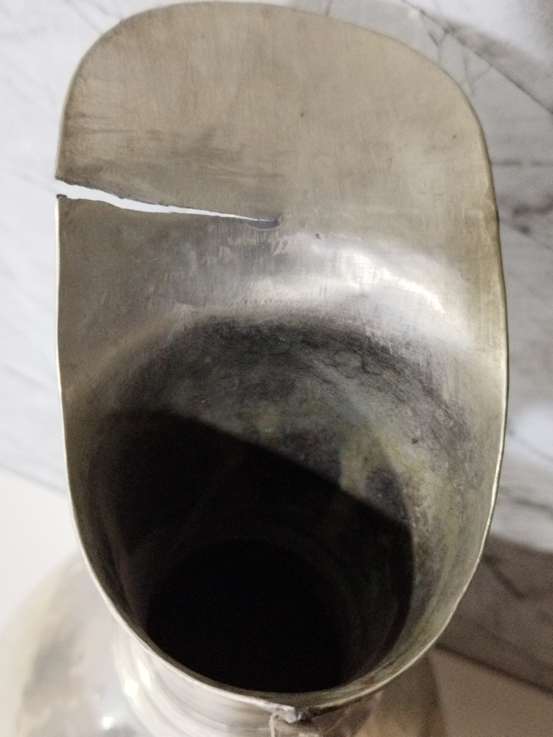 لبه پارچ پارگی دارد و دسته پارچ لحیم شده میباشد