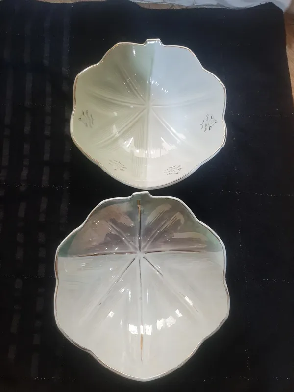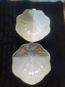 دو عدد کاسه انار خوری قطر 20 عمق 6 یکی دو رنگ گل دار در حد نو ژاپن سفارش ایران دور لب طلا دومی دو رنگ هفت رنگ دو تا خط داخل و کمی لبه طلا کمرنگ شده زیر ژاپن نوشته هر دو بسیار زیباتر از عکس تکی بخواهید دانه ای 350
