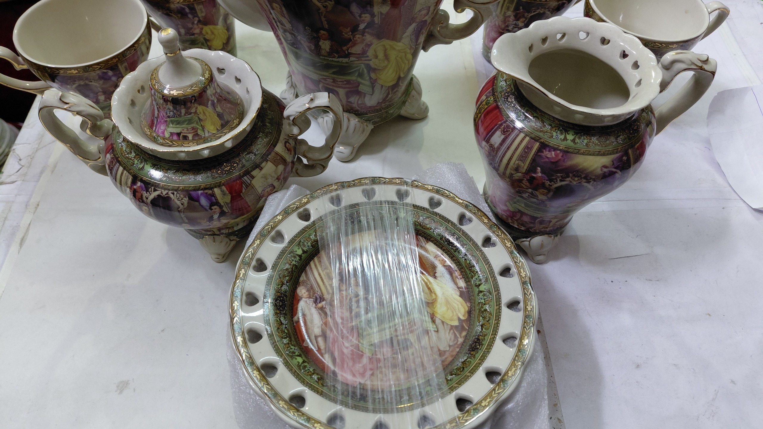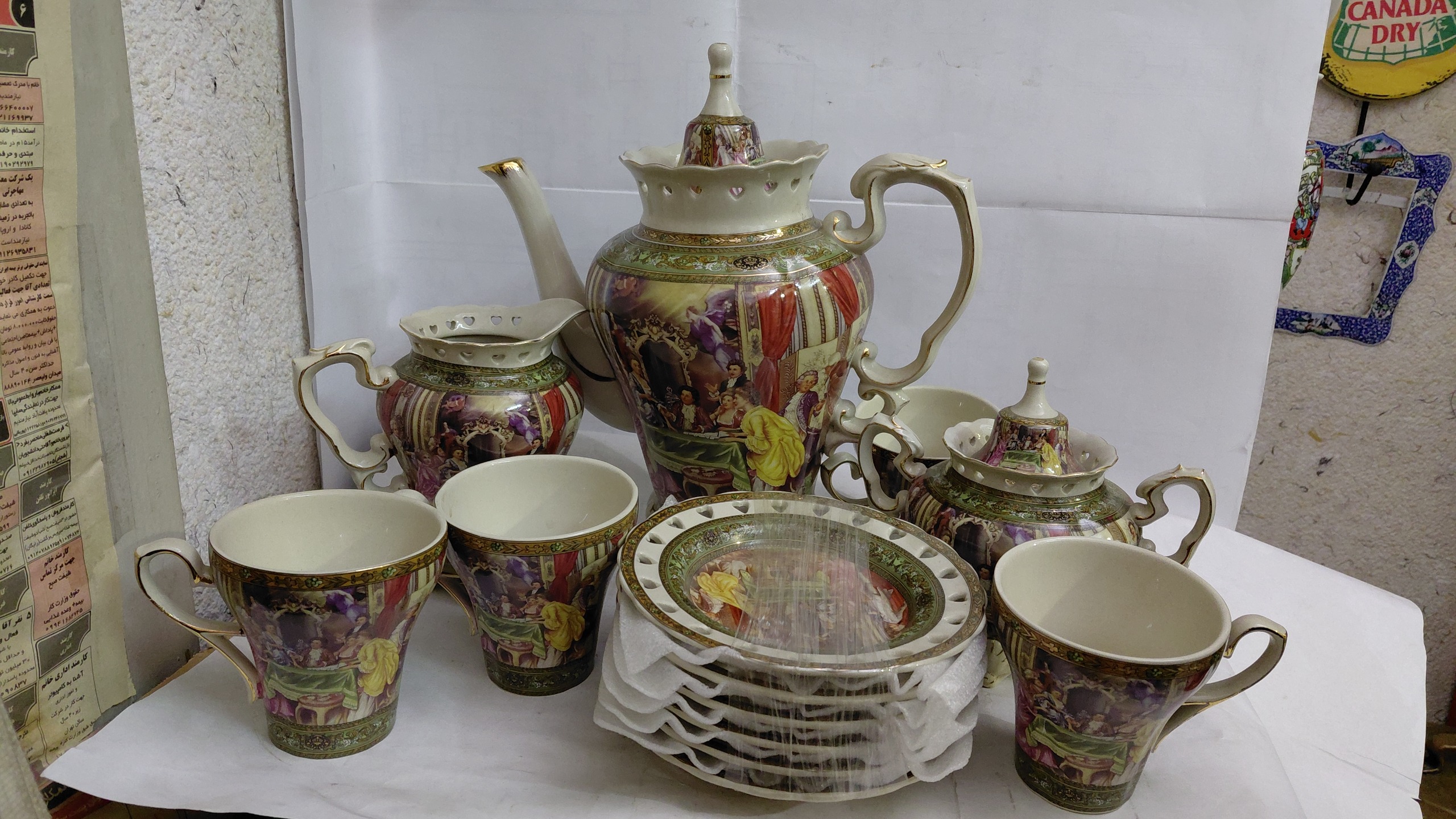 یک دست کامل نعلبکی 6تایی +فنجان 4 عدد + قوری بزرگ 1 عدد +قندان 1 عدد + شکردان 1 عدد مجموعا 15 تیکه هست.