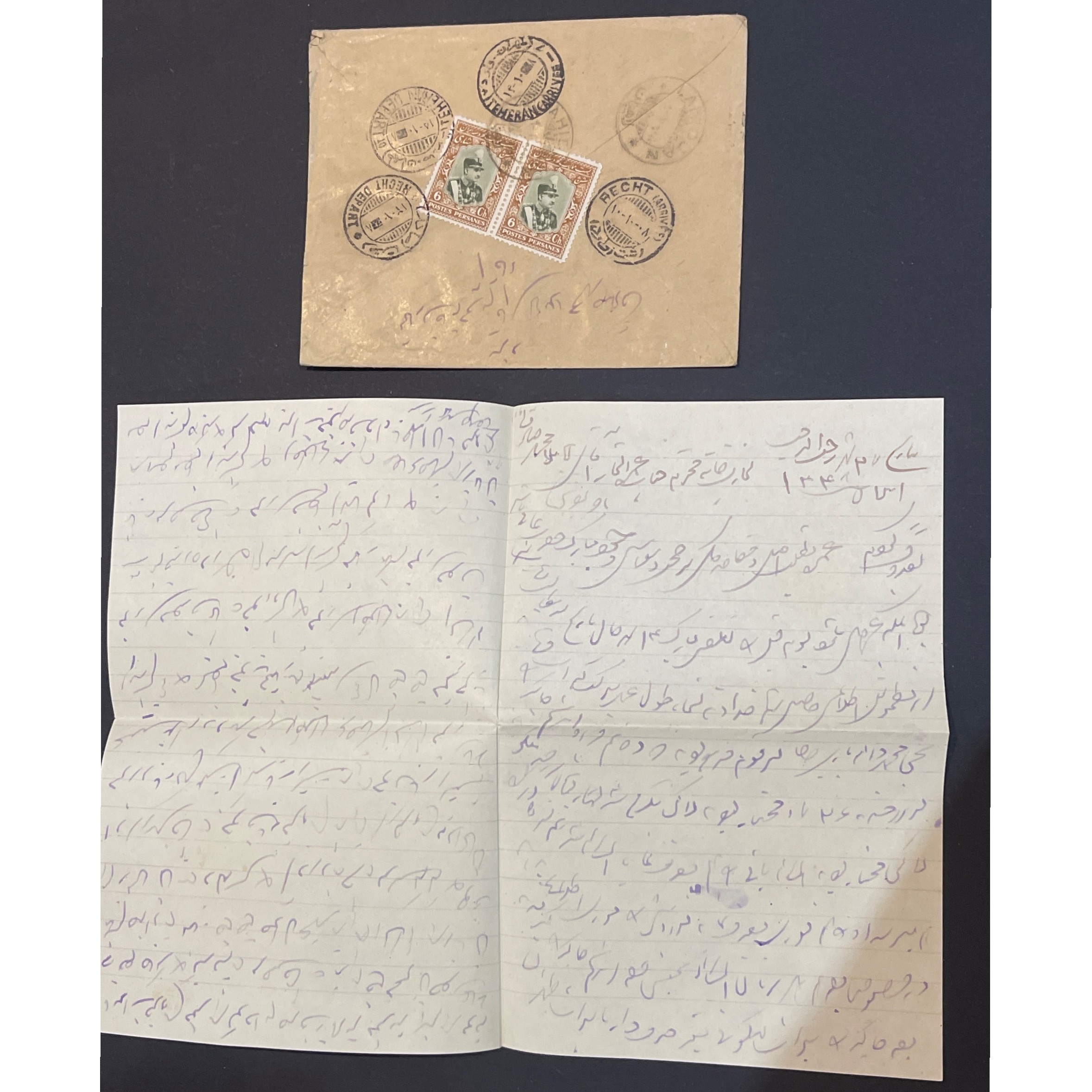 پاکت با نامه رشت به یزد با مهر صندوق