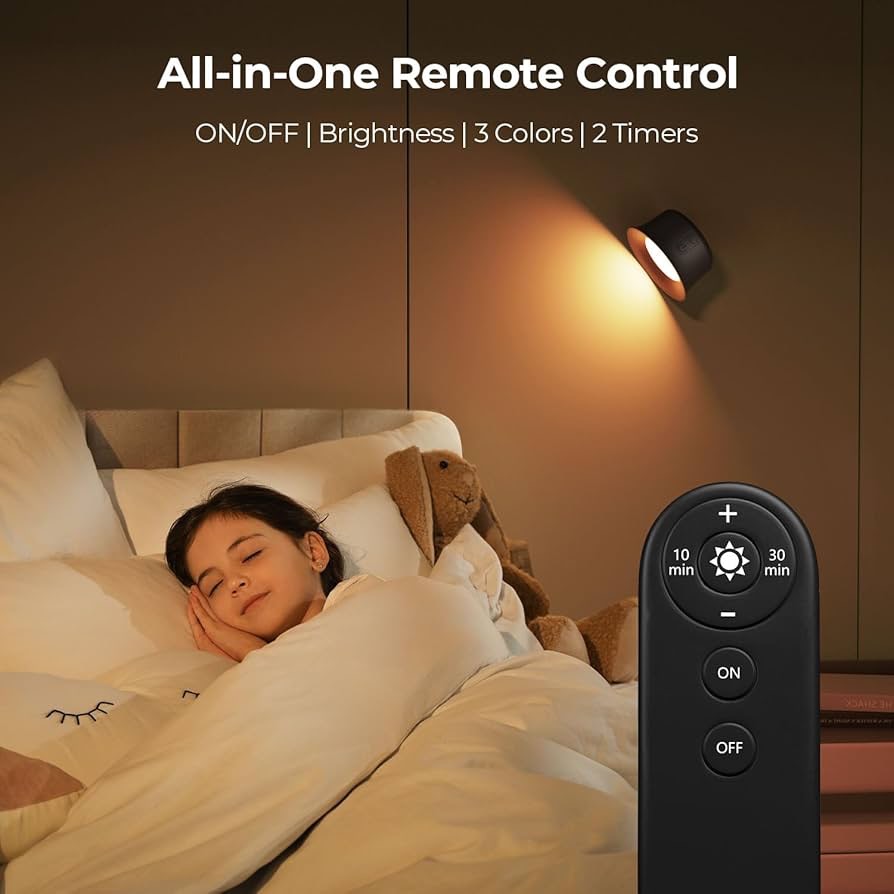 کنترل از راه دور همه کاره این چراغ دیواری بیسیم با 2 گزینه زمانبندی و عملکرد حافظه. میتوانید زمان 10 دقیقه و 30 دقیقه را از طریق کنترل از راه دور همه کاره، درست مانند یک چراغ مطالعه قبل از خواب تنظیم کنید. و چراغ رومیزی هوشمند کوچک آینده به شما کمک میکند آخرین حالت و روشنایی مورد استفاده را به خاطر بسپارید تا دفعه بعد راحتتر باشید.