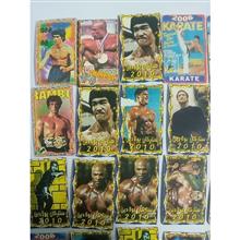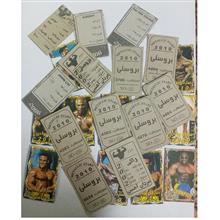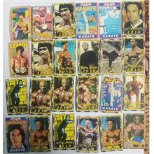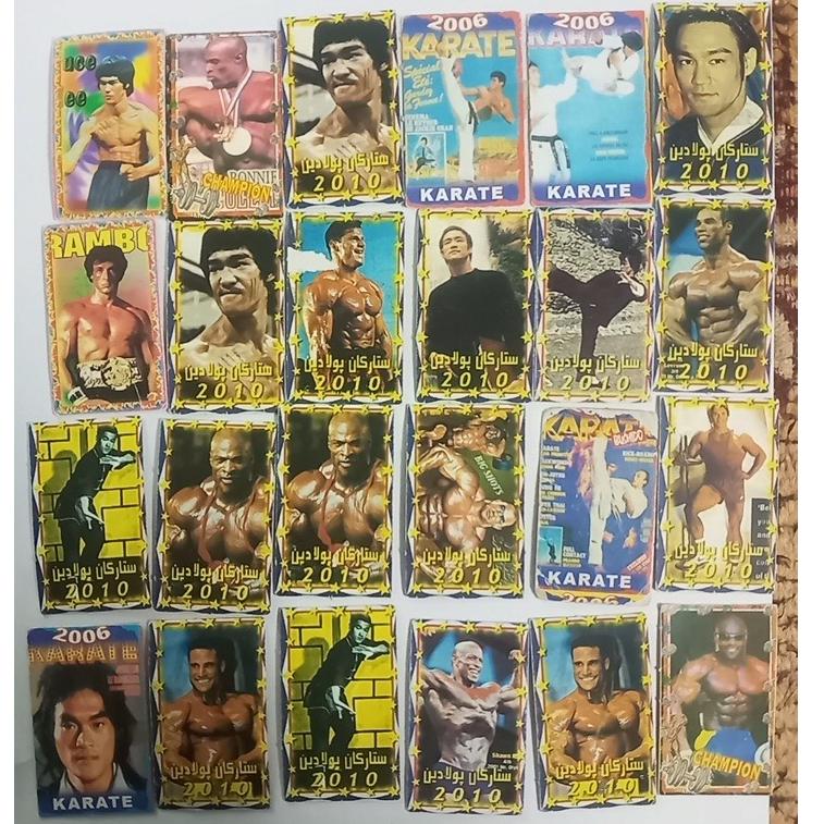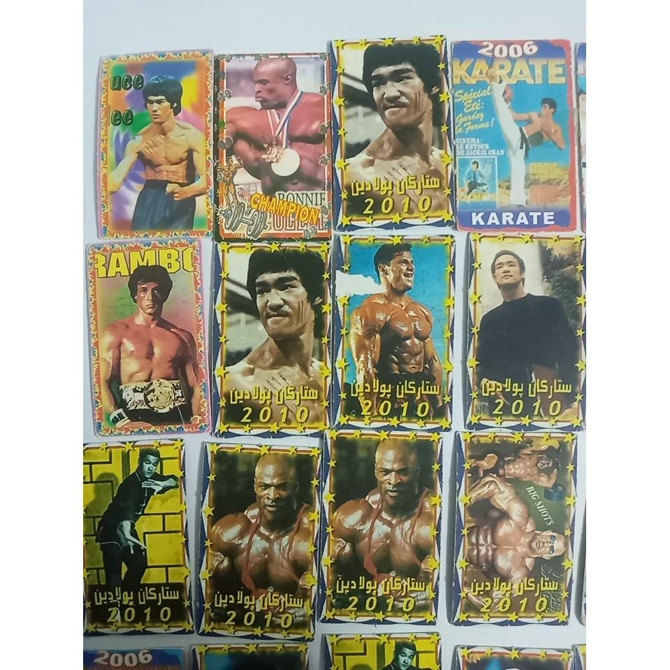 کارت بازی قدیمی، خیلی زیبا و ارزشمند فقط هفت هشت تاش از بروسلی هست که خیلی ارزشمنده و یدونه کارت رامبو یا راکی این کارت ها کاملن نایاب هستن و هرکی داره برا کلکسیونی خودش هست این کارت ها را حتی دونه بیست هزار هم بفروشی بازم آدم حیفش میاد، چون از دستت که بره خیلی سخت بشه جایگزینش کرد، ولذا قیمت قطعی هست به نظر حدود 24 کارت هستن و قیمت مقطوع صدو شصت هزار تومان است