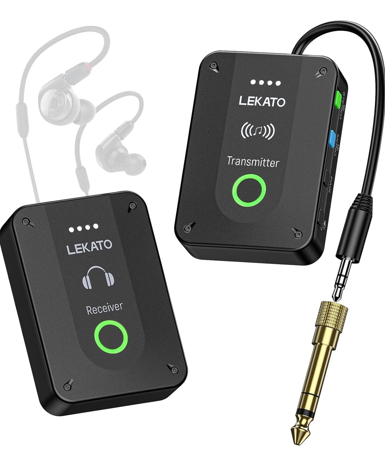 سیستم مانیتورینگ بیسیم داخل گوشی LEKATO MS-02، سیستم IEM استریو 2.4 گیگاهرتزی ارتقا یافته با تأخیر کم، فرستنده، گیرنده Beltpack، جفت شدن خودکار، مانیتورینگ داخل گوشی برای کلیسا، گروه موسیقی، خواننده، صحنه