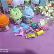 خمیر بازی سطلی کوچک .8تکه خمیر رنگی و چهار قطعه مطابق تصویر