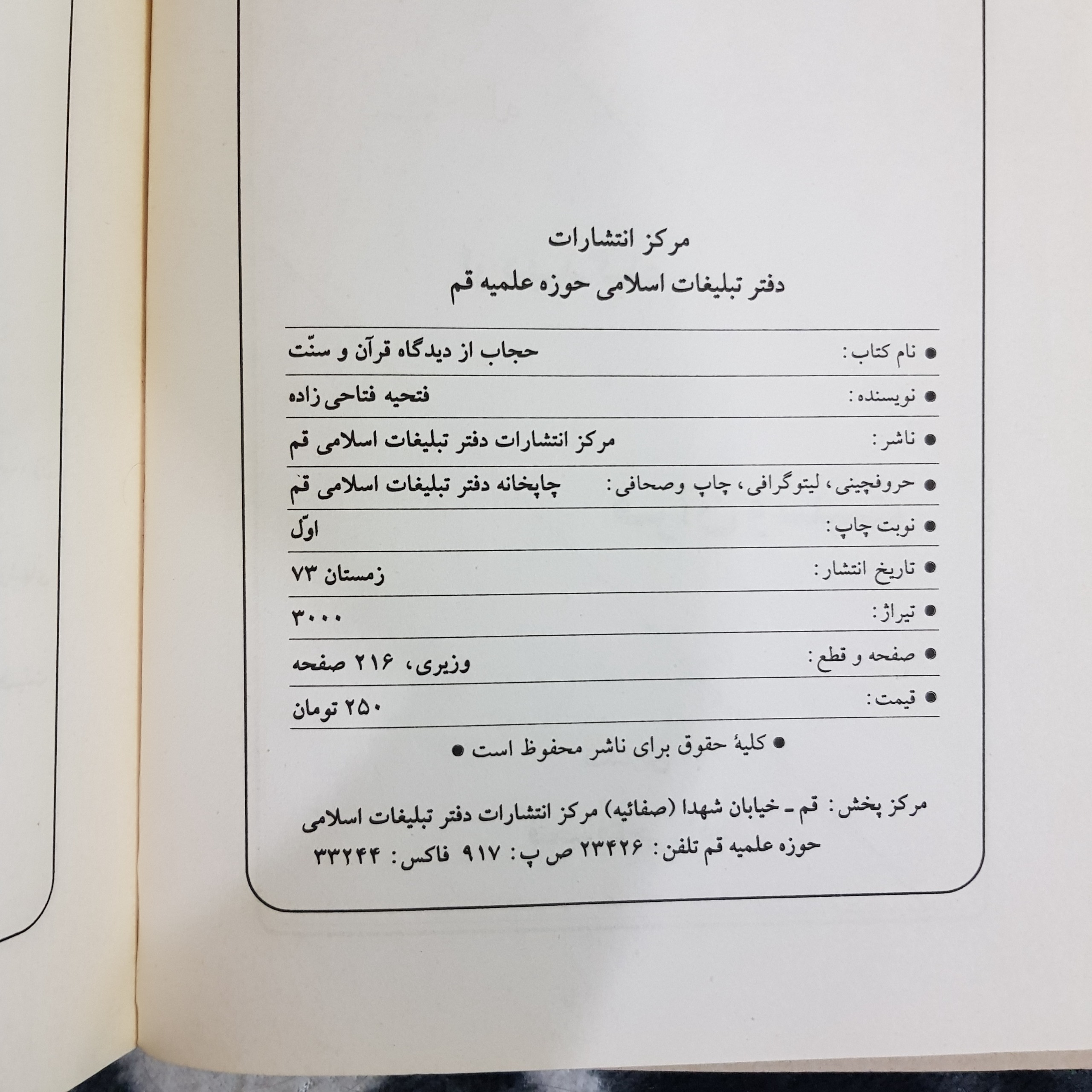 کتاب سالم است ولی جلد آن فرسوده شده و آسیب دیده است. لبه بالای صفحات ابتدایی کتاب کمی اثر خم شدگی دارند. در تعدادی از صفحات کتاب نوشته با مداد وجود دارد. کتاب کمی حالت جداشدگی از جلد پیدا کرده است.
