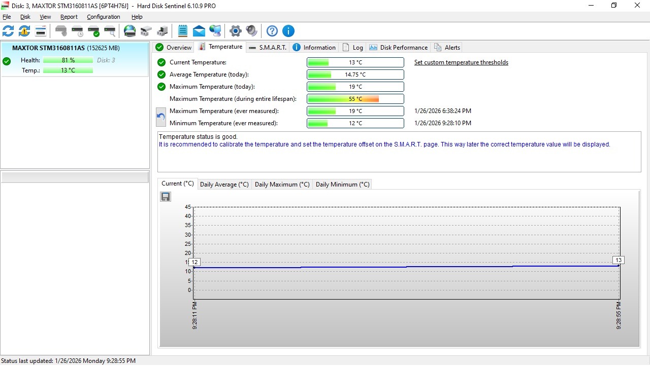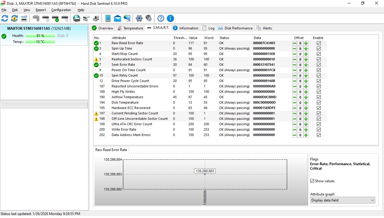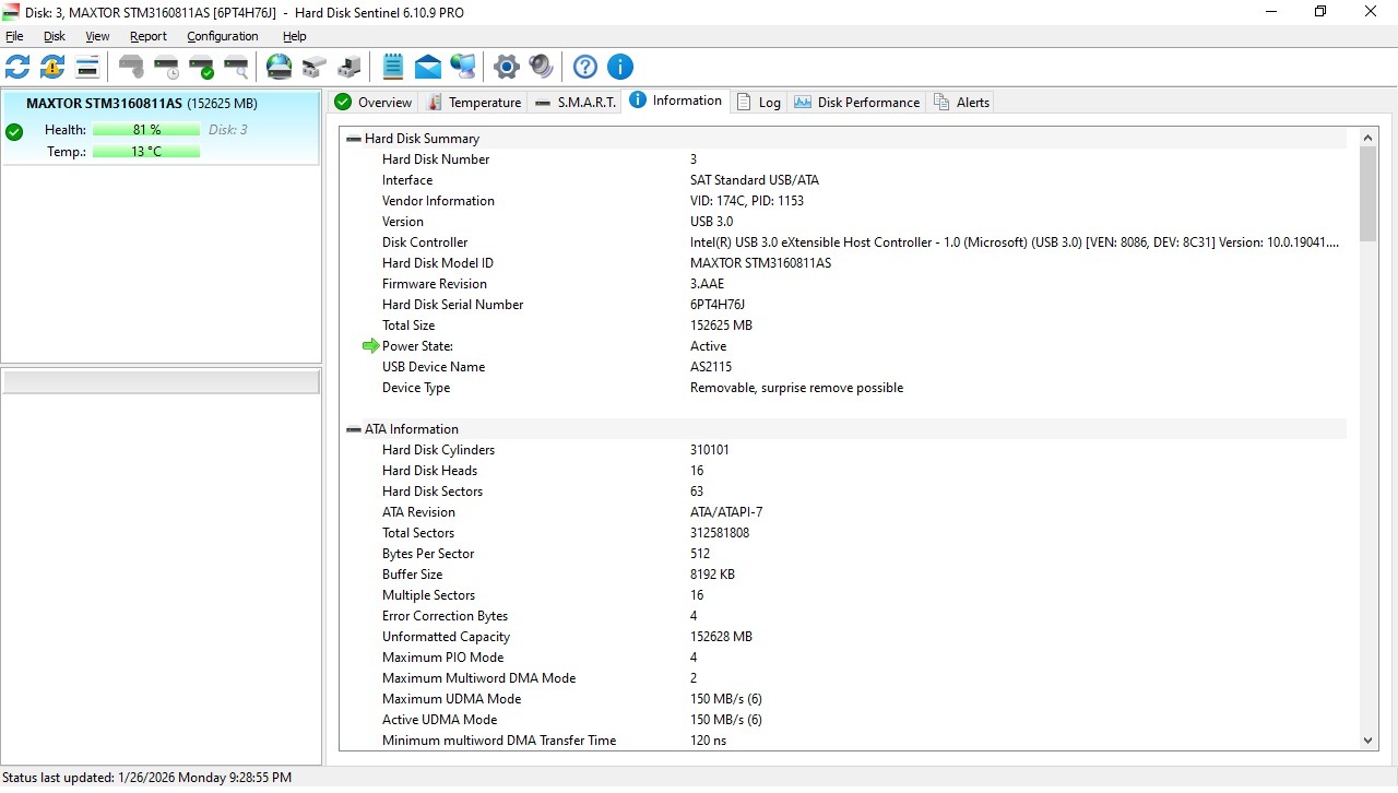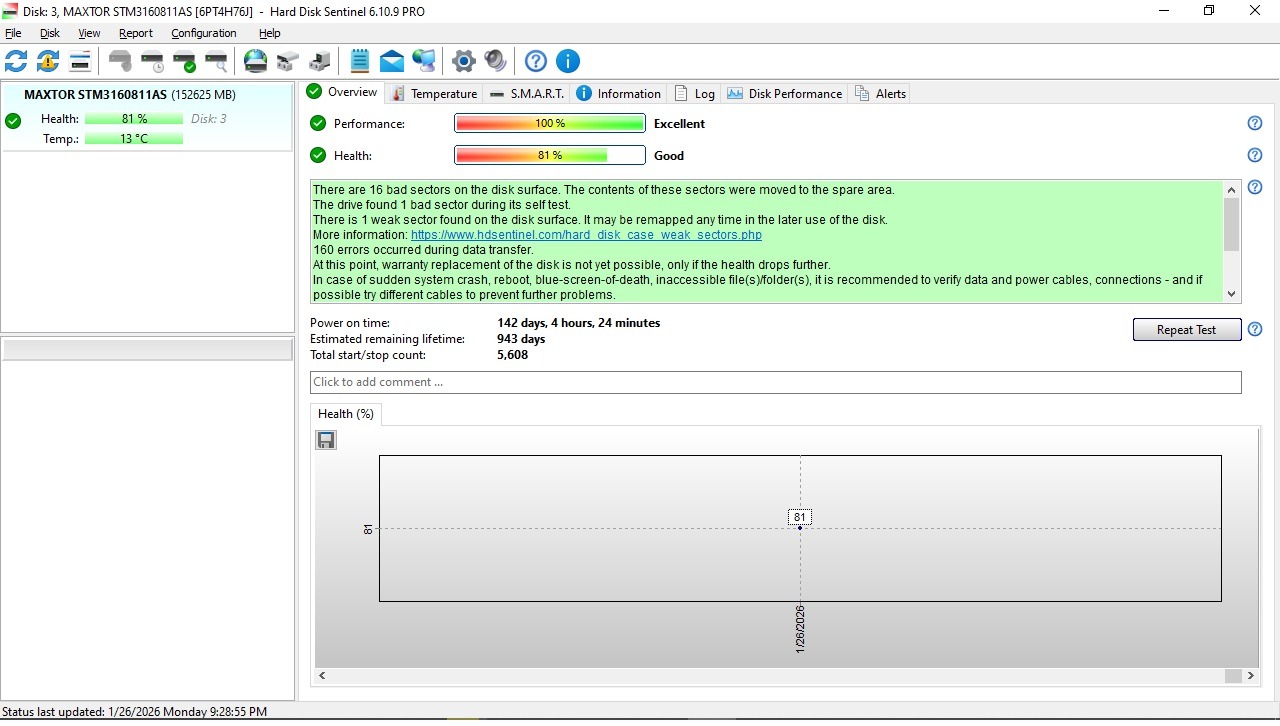 هارد 160 گیگ مکستور کم کار با هلث 81