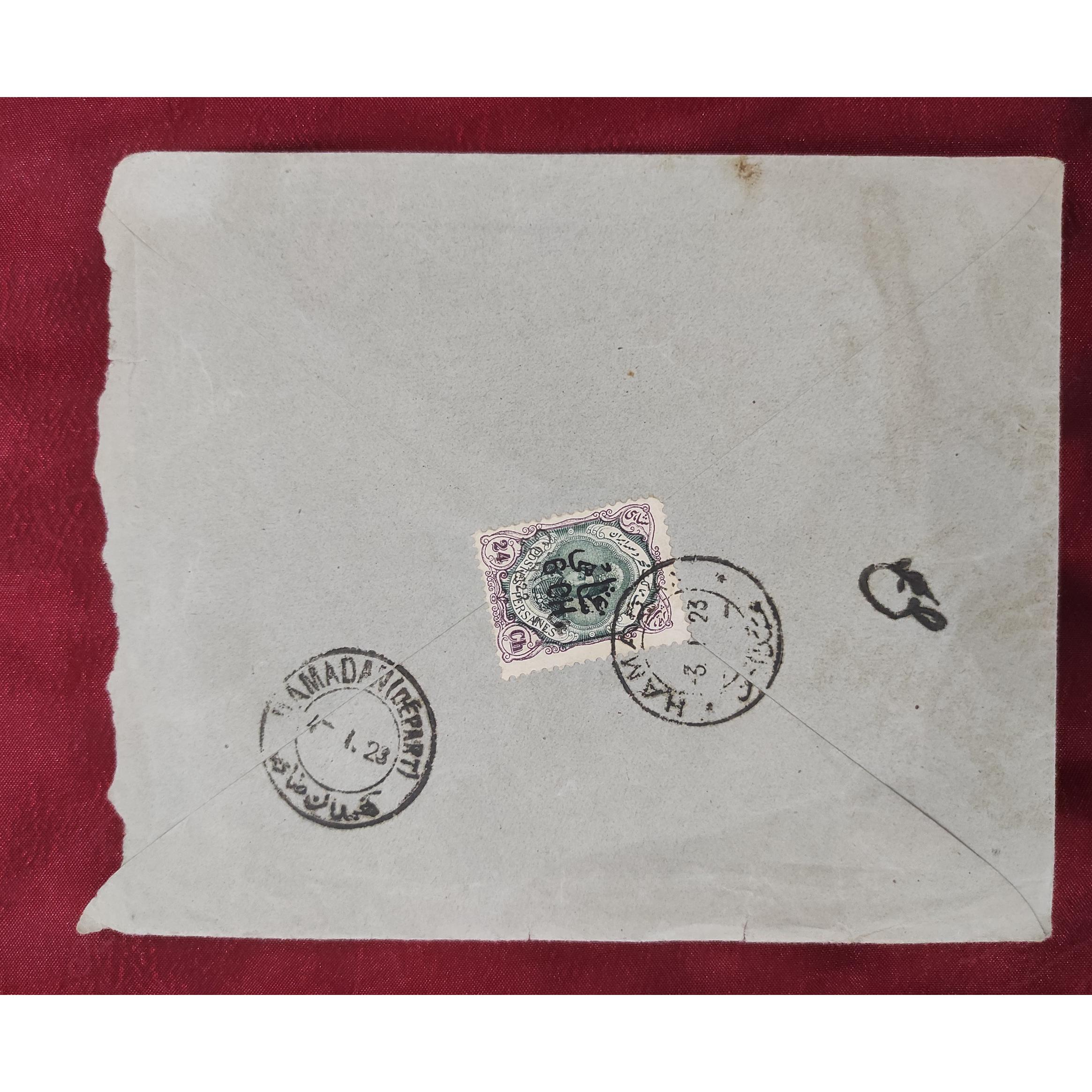 پاکت تمبردار احمدی با تمبر 24شاهی کنترل و سورشارژ 6شاهی با مهرهای همدان ، اصفهان، و صندوق
