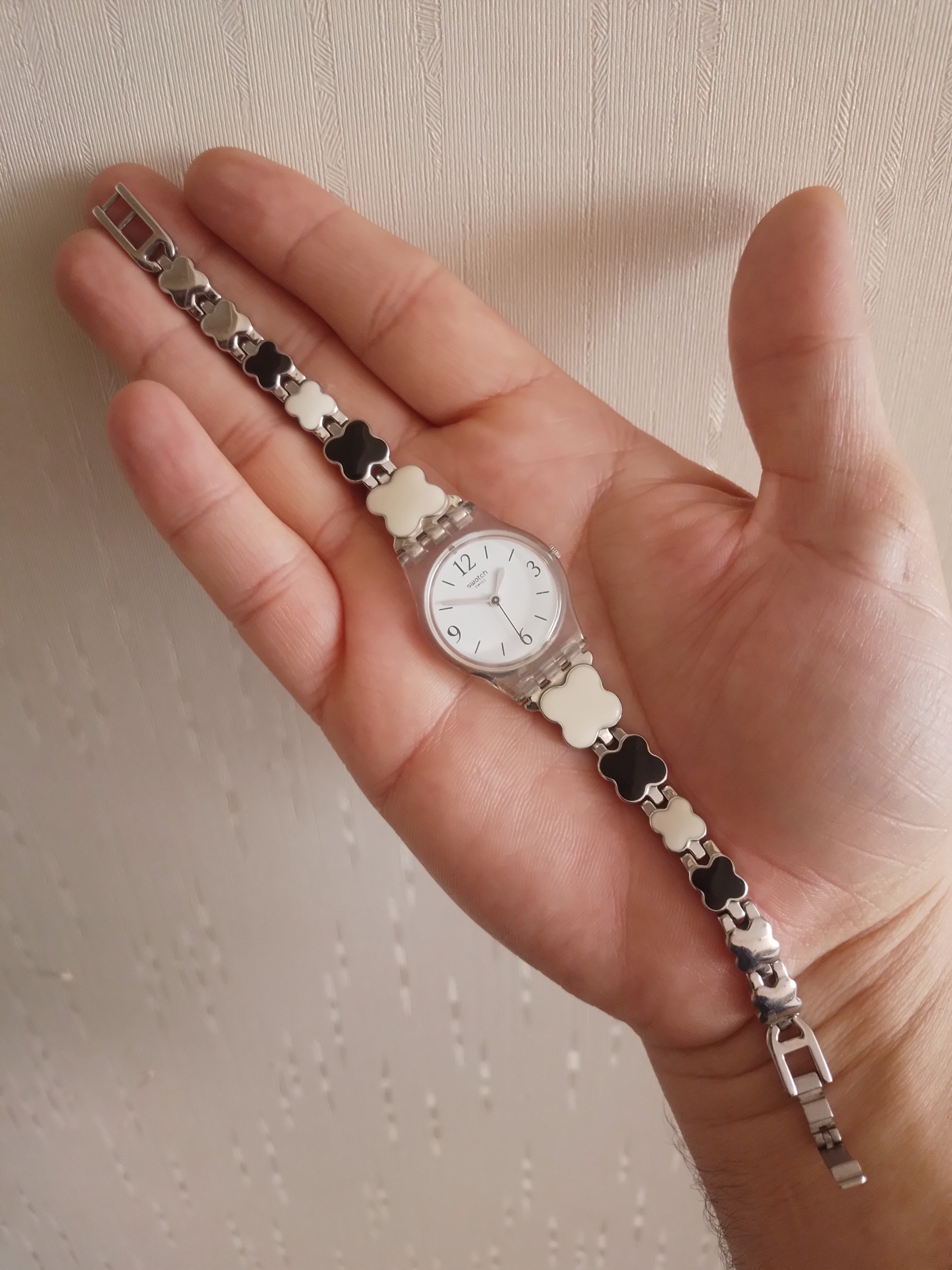 درود..سواچ زنانه مدل و طرح خاص و زیبا..کاملا سالم و بدون نقص از برند سواچ سوئیس