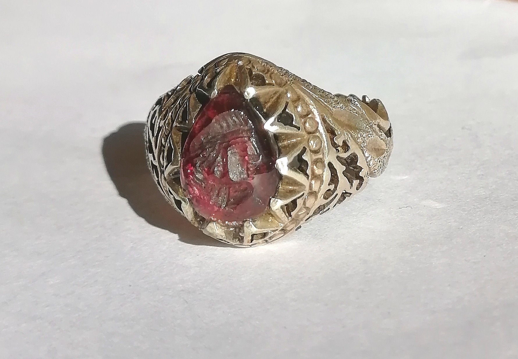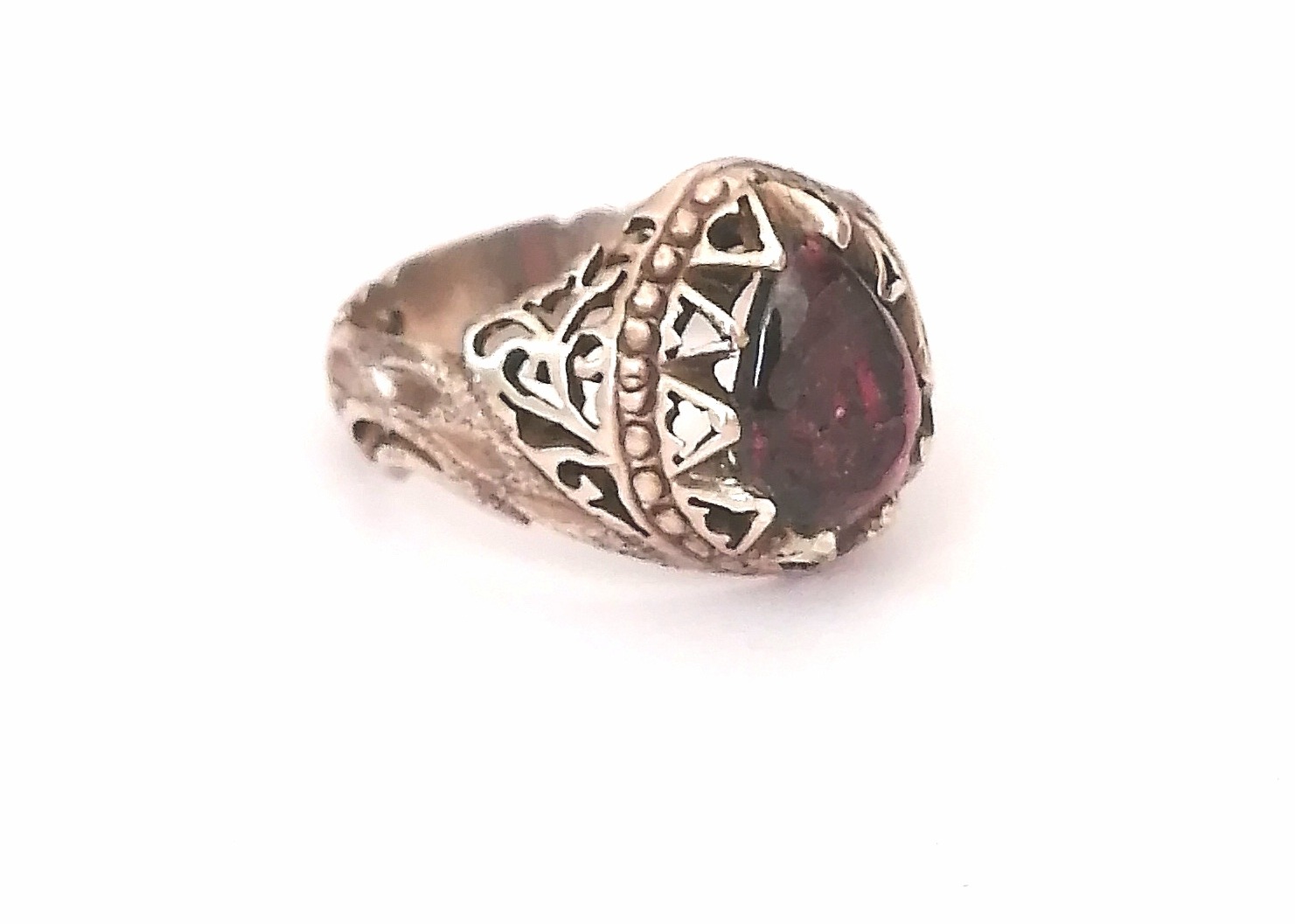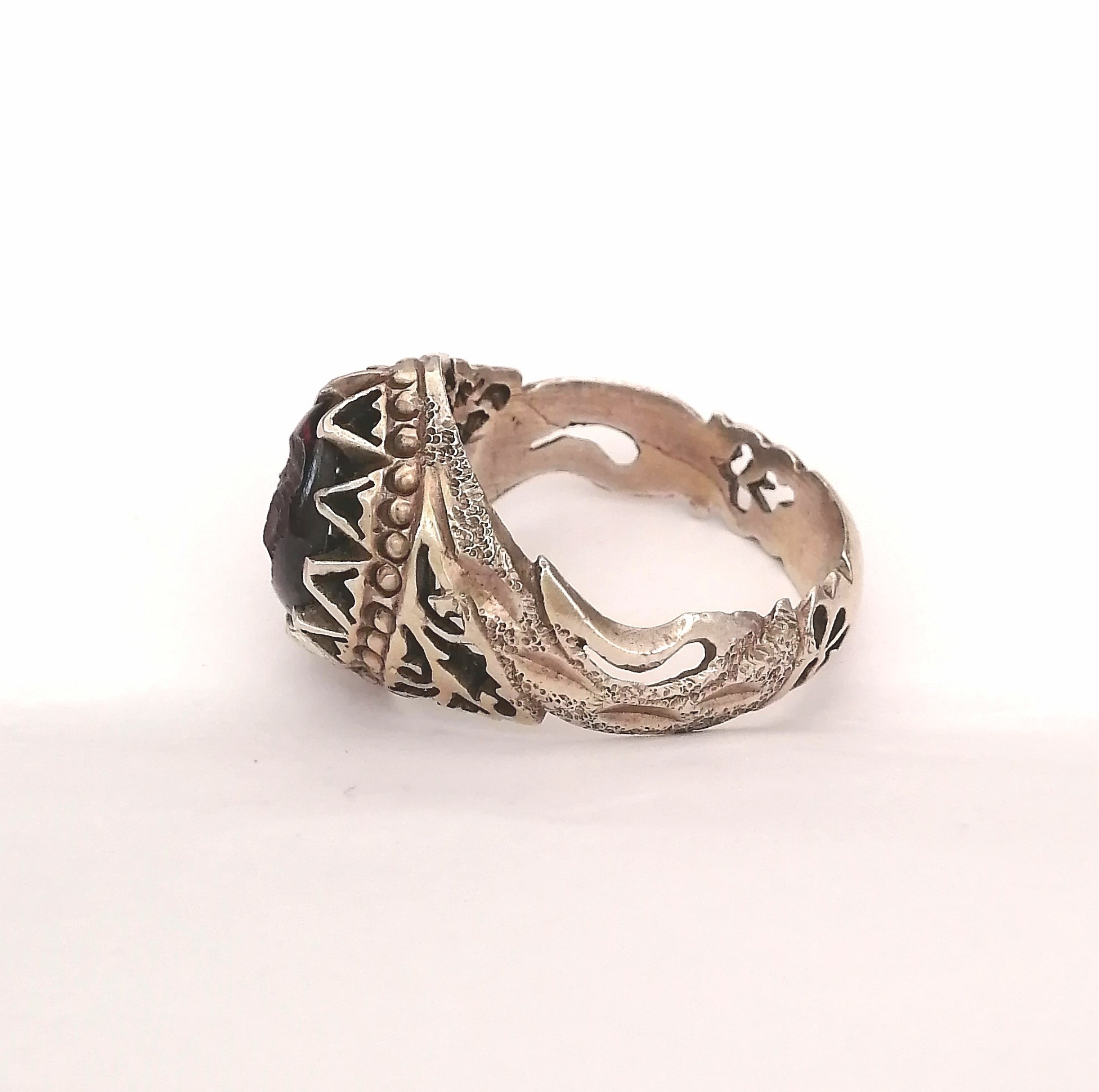 انگشتر نقره مردانه بسیار زیبا با نگین گارنت قرمز یا یاقوت سیلان نشان دار کهنه