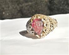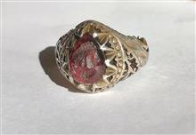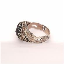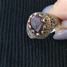 انگشتر قدیمی نقره با نگین نشان دار یاقوت سیلان