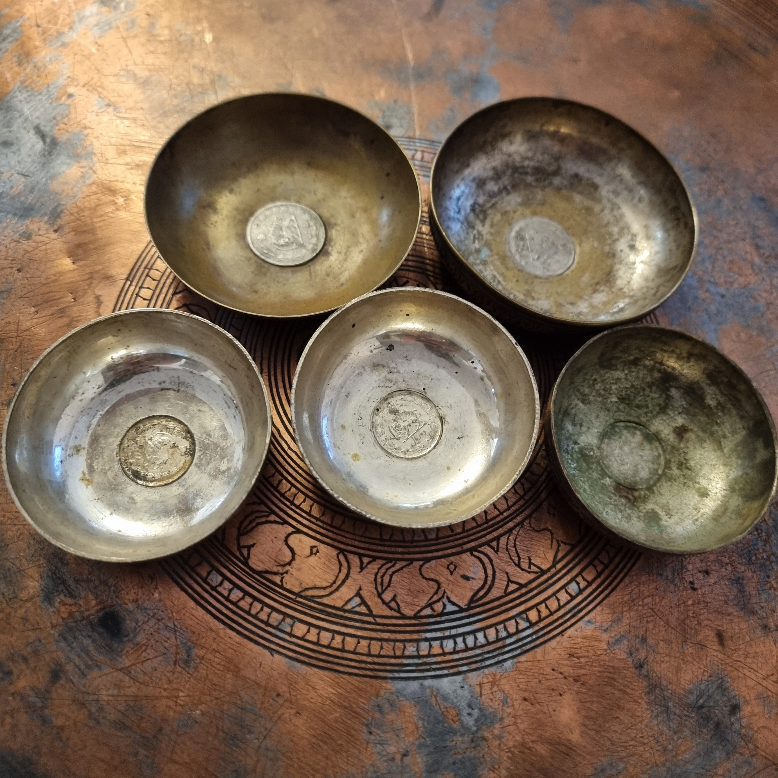 پیاله کوچک ترها کفه 2 ریال پهلوی و نوع فلز احتمالا ورشو