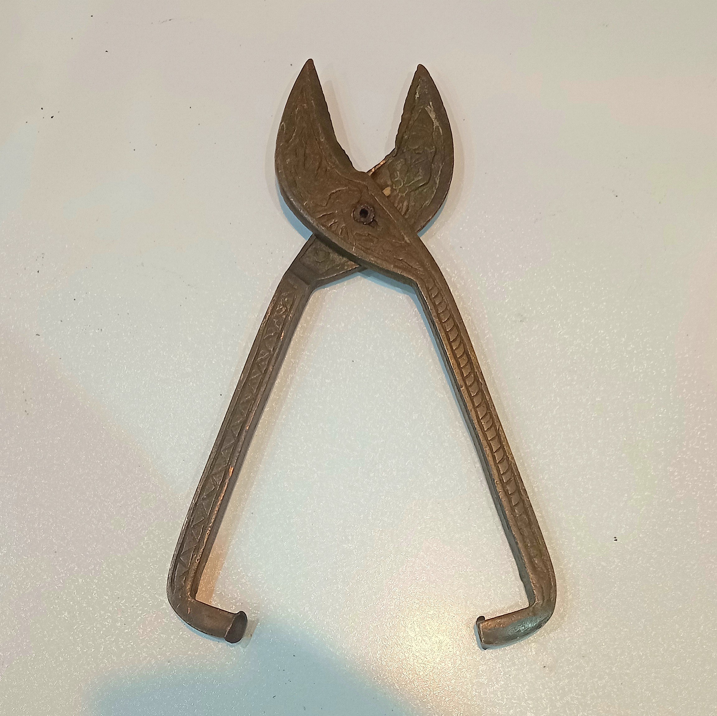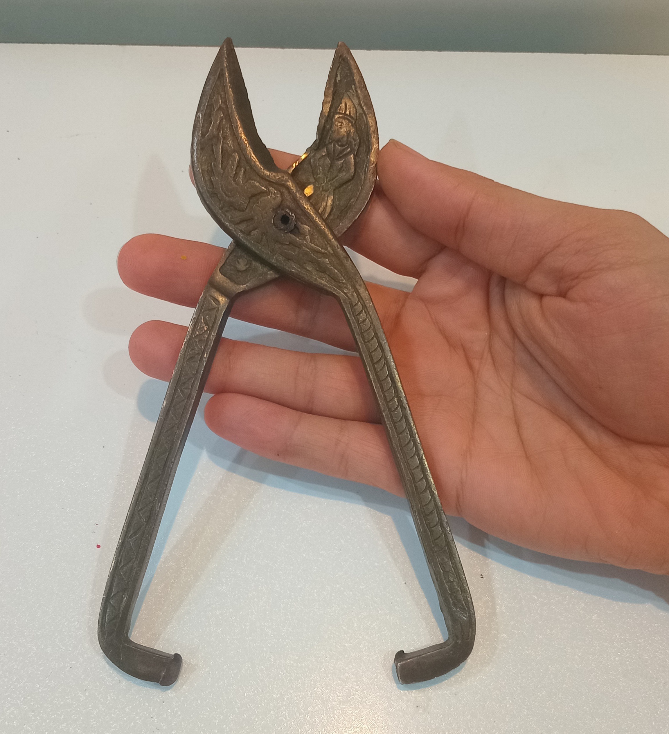 یک عدد قیچی برنجی قدمت دار عتیقه با نقش و نگار