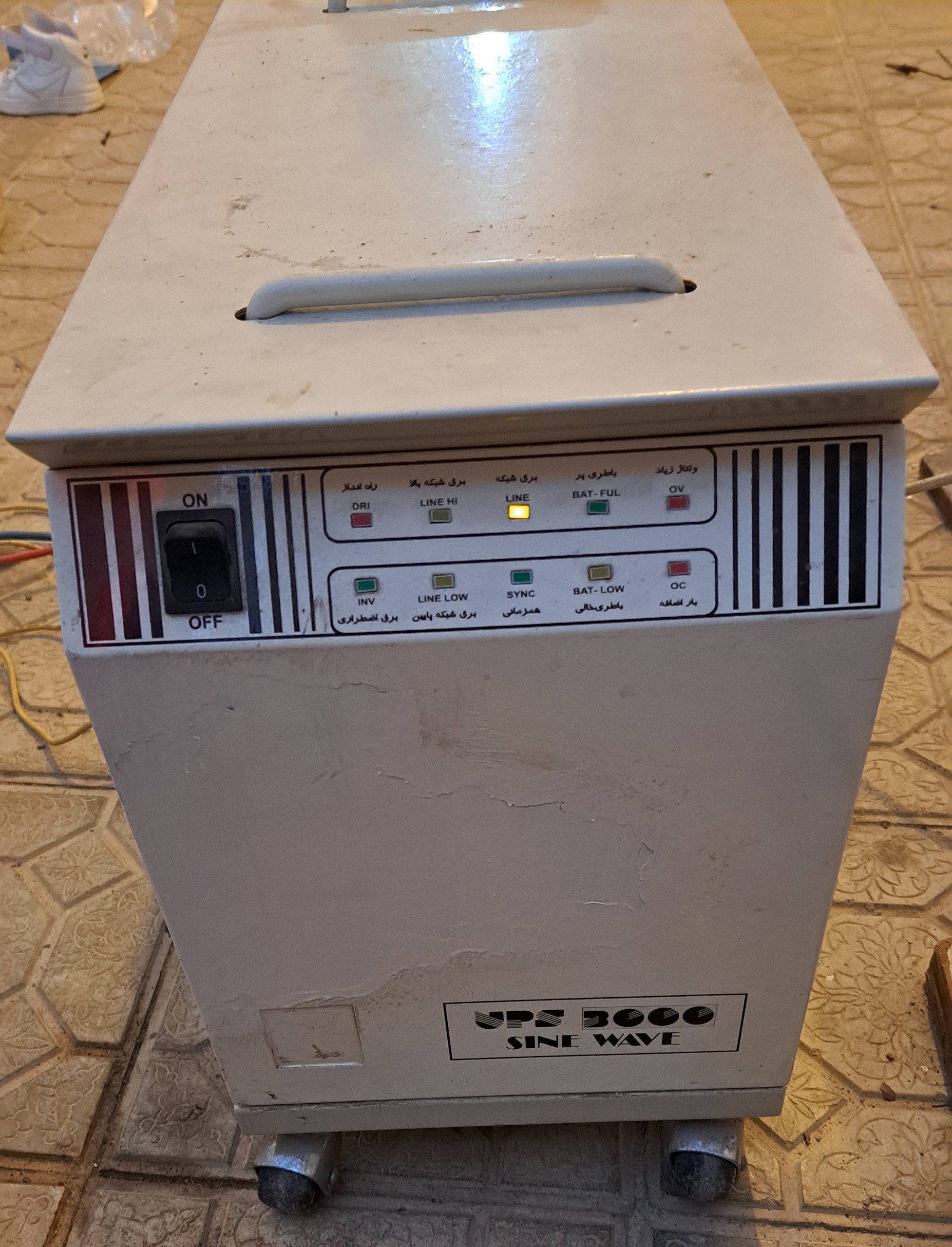 دستگاه یوپی اس 3000 حدود بیست سال پیش خریدم وهمانجوری بلا استفاده مانده به برق زدم چراغ برق شهر روشن شد واز خروجی هم ولت گرفتم حدود 42 ولت است دیگر چیزی از عملکردش نمی دانم تمام لوازم الکترونیک داخل دستگاه در معرض نمایش هست وزنش هم بالای 30 تا 40 کیلو باید باشد یک ترانس قولی دارد ودارای یک کیس بزرگ که جای 4تا باتری رادارد در 2طبقه هر طبقه 2عدد باتری جا میگیرد وضمنا بعلت استفاده نکردن جلوی دستگاه کمی رنگش ریخته بود که خودم همان قسمت را رنگ روغنی زدم وارسال هم از طریق تیپالس هست که هزینه هم بر عهده خریدار لطفا خوب دقت کنید از وضعیت سلامت ویا معیوبی چیزی نمی دانم چون باتری برای تست نداشتم فقط در این حد که چراغ برق شهر روشن میشودوطبق تصویر.لطفا کننده کار خرید کند دقت دقت ، دقت