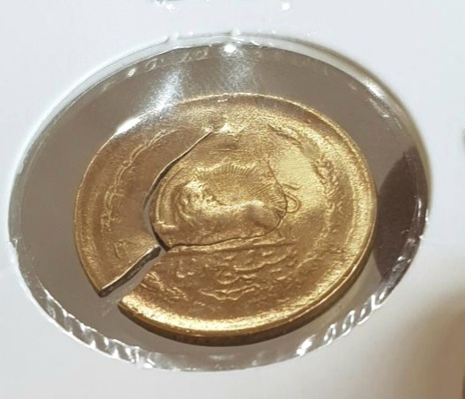سکه فوق دارای ارور ترک شدید پولک بوده و بسیار کمیاب میباشد