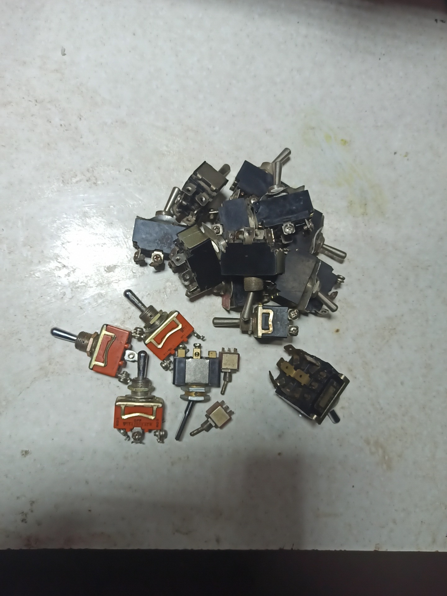 تعداد 20 عدد کلید پاور الکترونیکی شامل کلید کلنگی ژاپنی 9 پایه 3حالته و3پایه دو حالته و انواع دیگر. همه سالم وغیره چینی تعداد 7عدد کلید فشاری