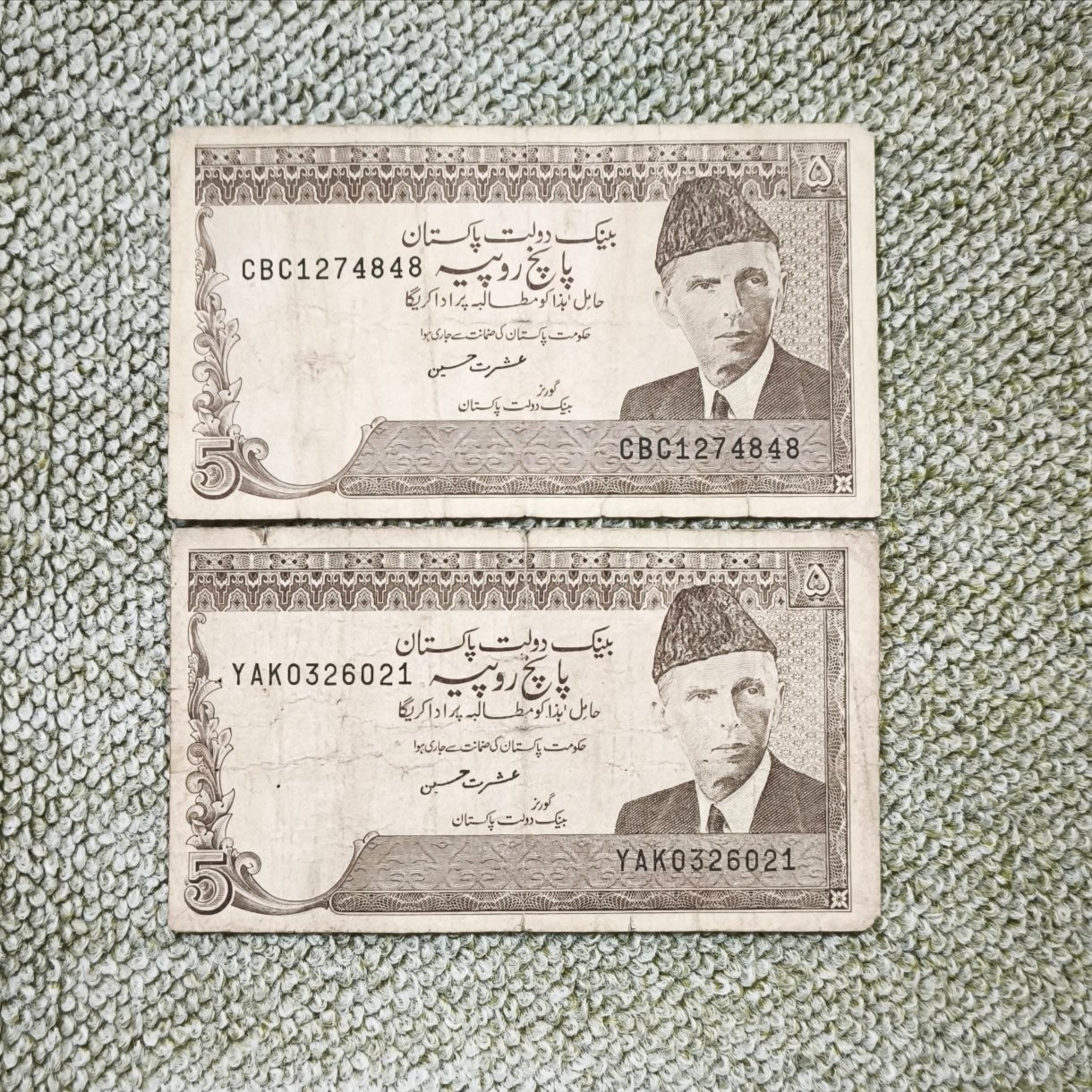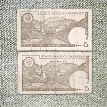 دو برگ اسکناس پنج روپیه پاکستان سری قدیم با تصویر محمدعلی جناح، کیفیت مطابق تصویر، قیمت برای هر دو اسکناس با هم است.