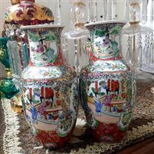 جفت گلدان قدیمی گل ومرغ نقش کمیاب سکه درباری
