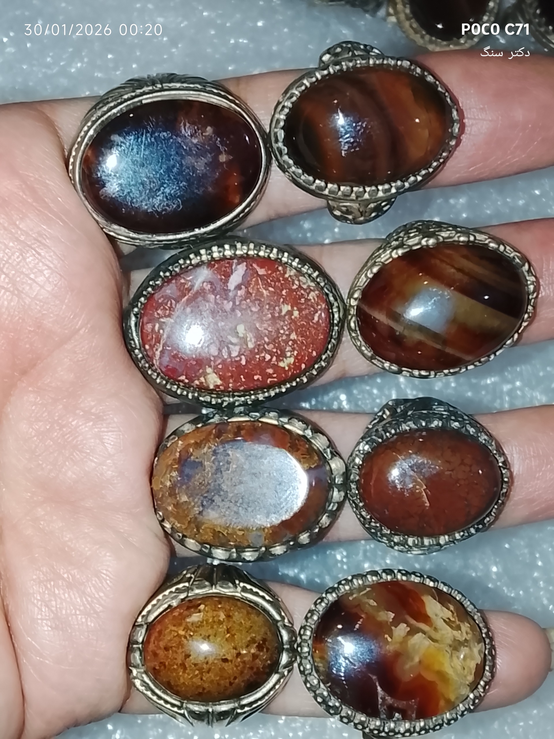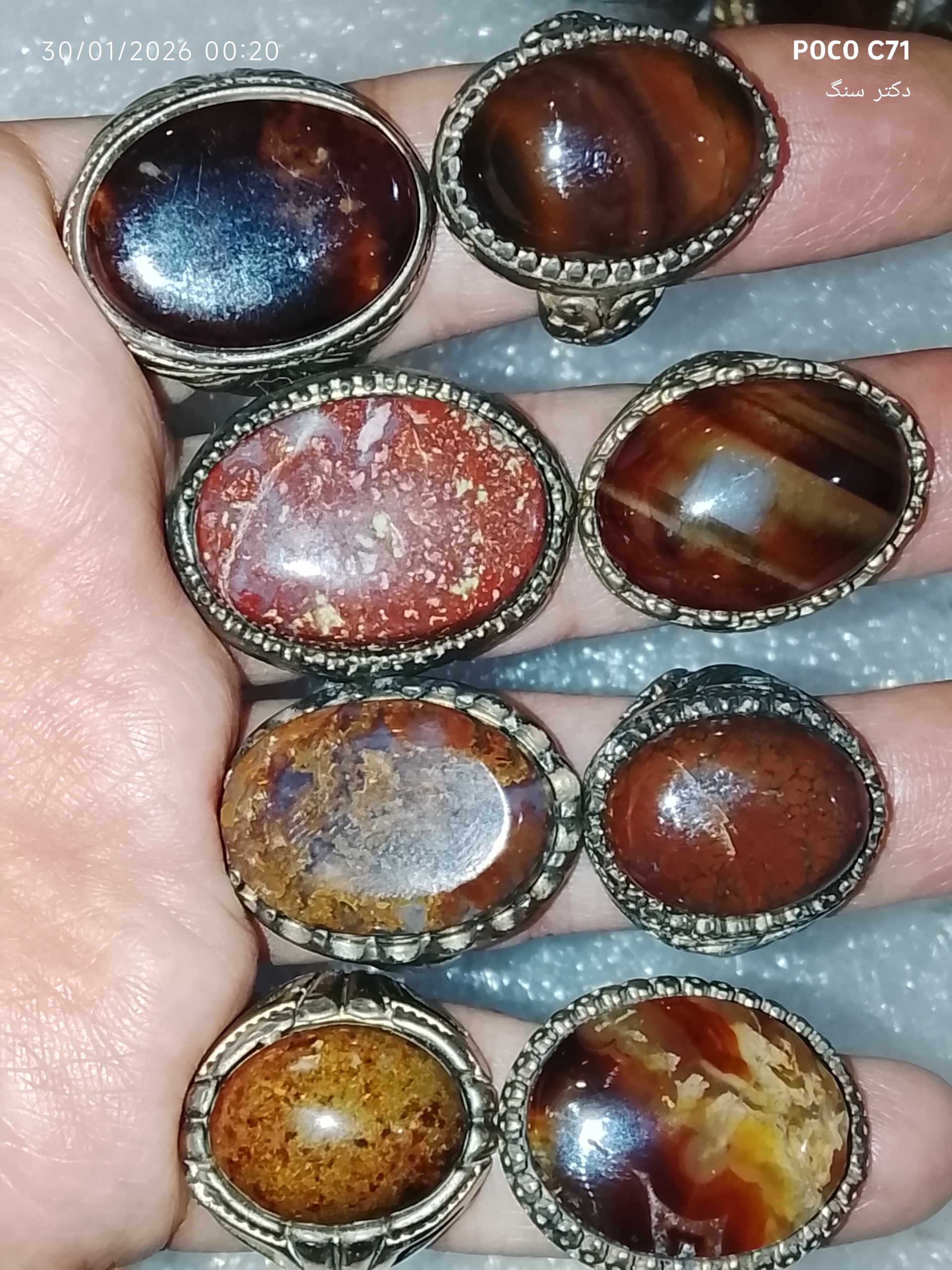8عدد انگشتر متنوع ومعدنی طبیعی اصل ناب
