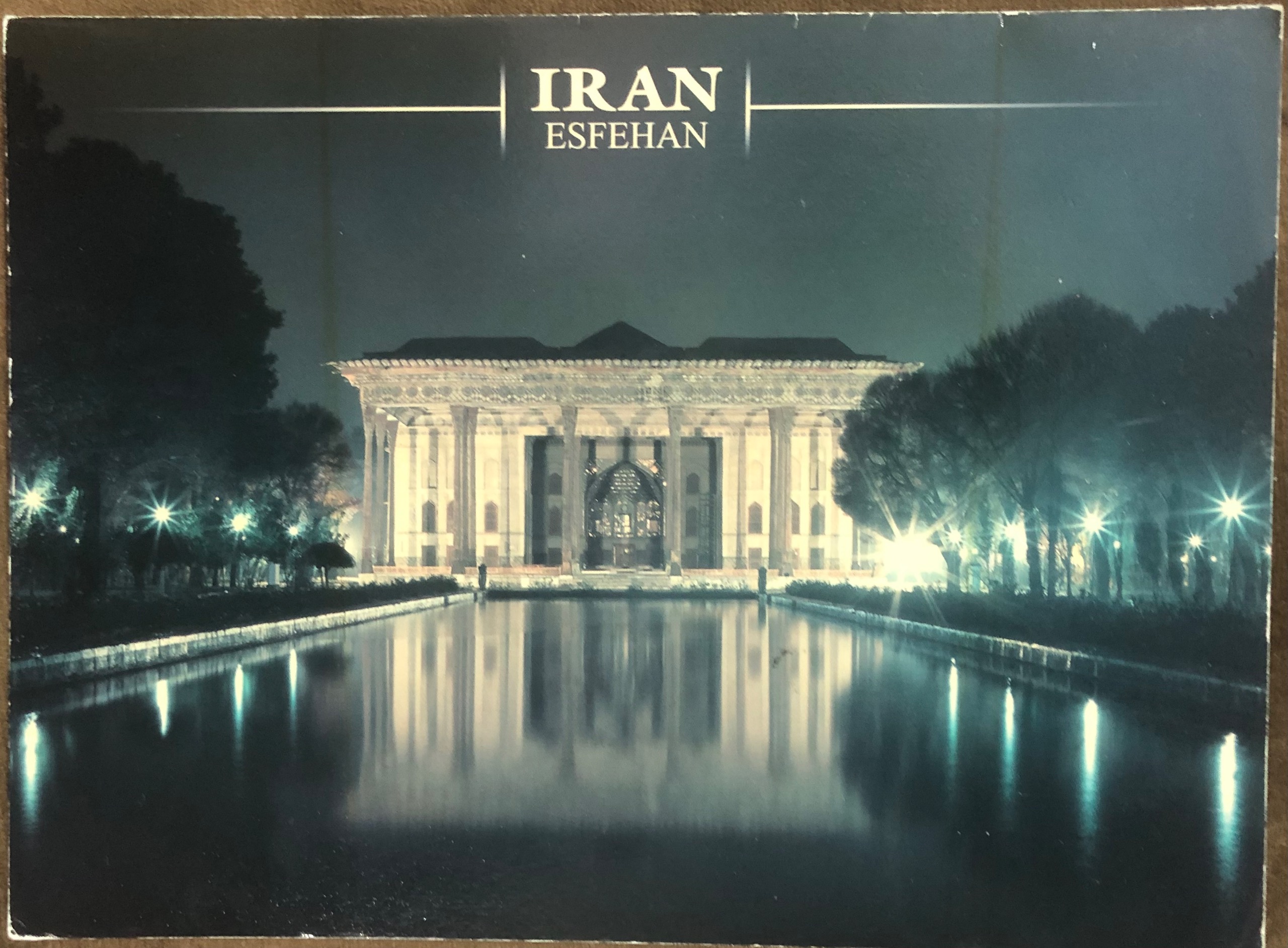 کارت پستال بزرگ دوبرگی تاریخی. چهل ستون اصفهان