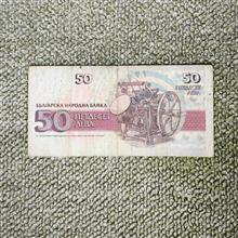 اسکناس پنجاه لوای بلغارستان سری 1992 میلادی. اسکناس دست دوم و یکی دو خط خوردگی خودکار روی اسکناس هست که با توجه به این موارد قیمت گذاری شده است