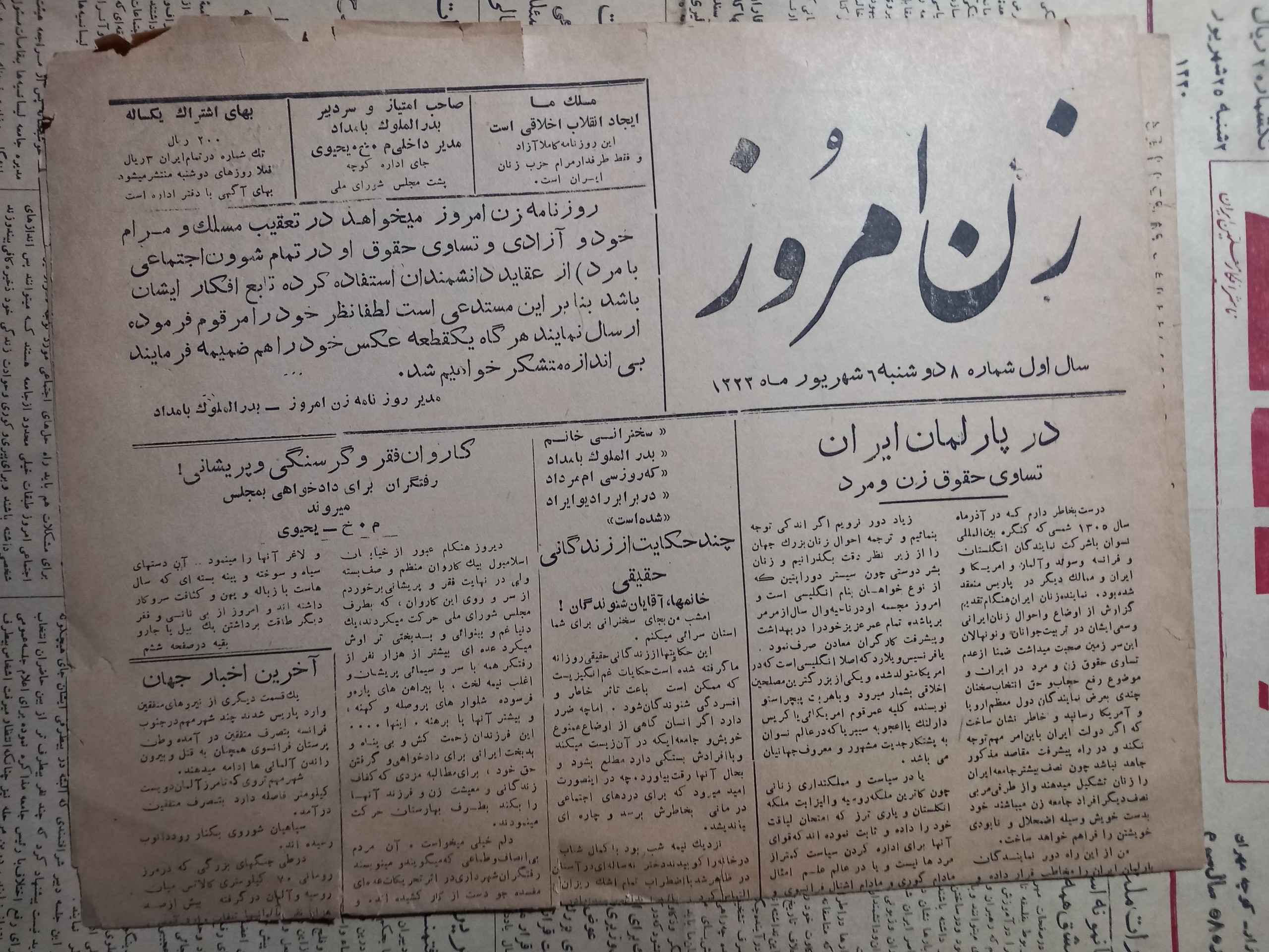 روزنامه زن امروز.1323