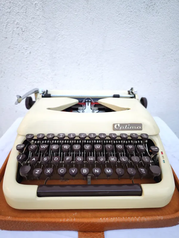 ماشین تایپ اپتیما بسیار تمیز و در حد نو همه چیز فابریک با کیف چرمی بسیار زیبا خاص شاهکار آلمان رنگ نایاب خاص