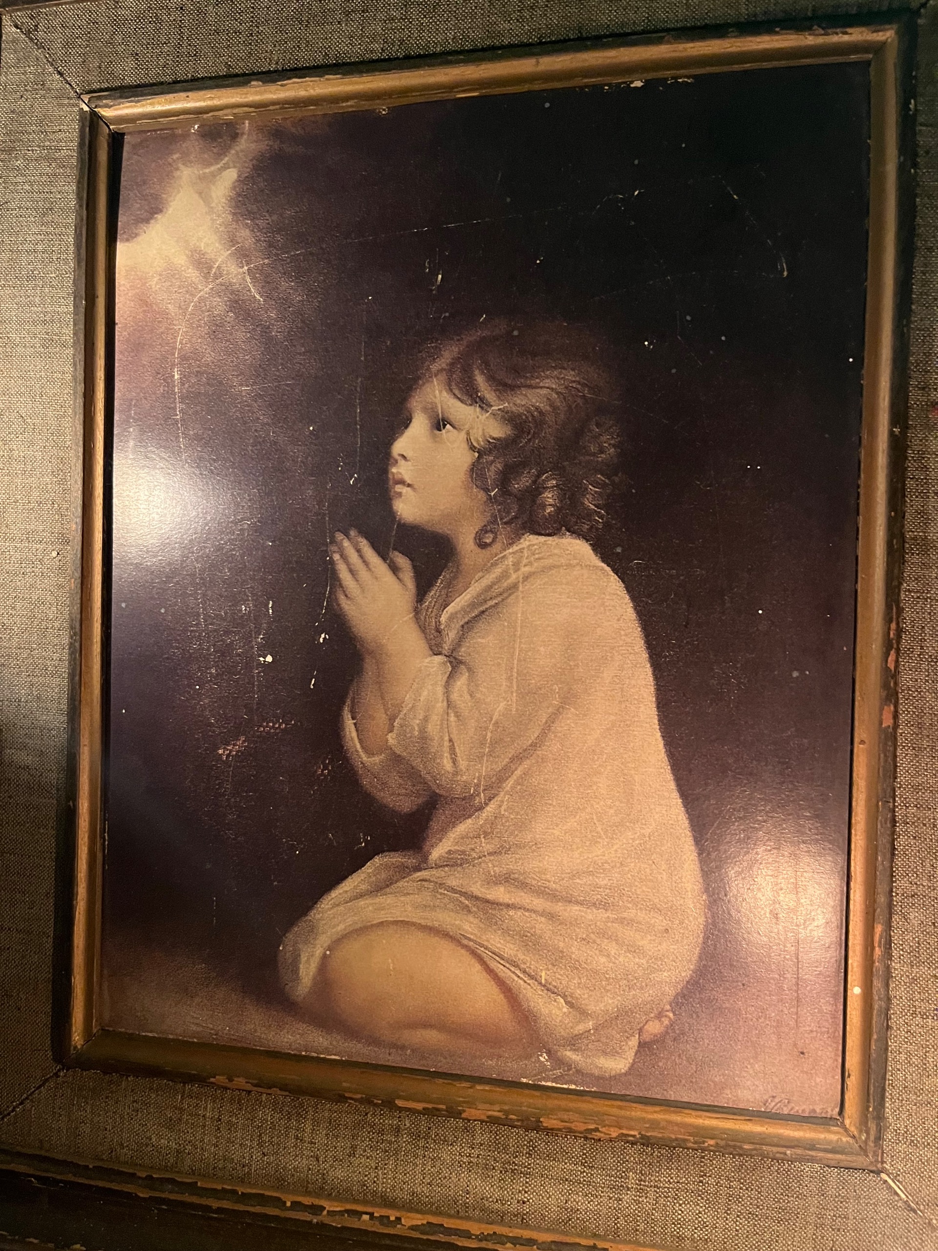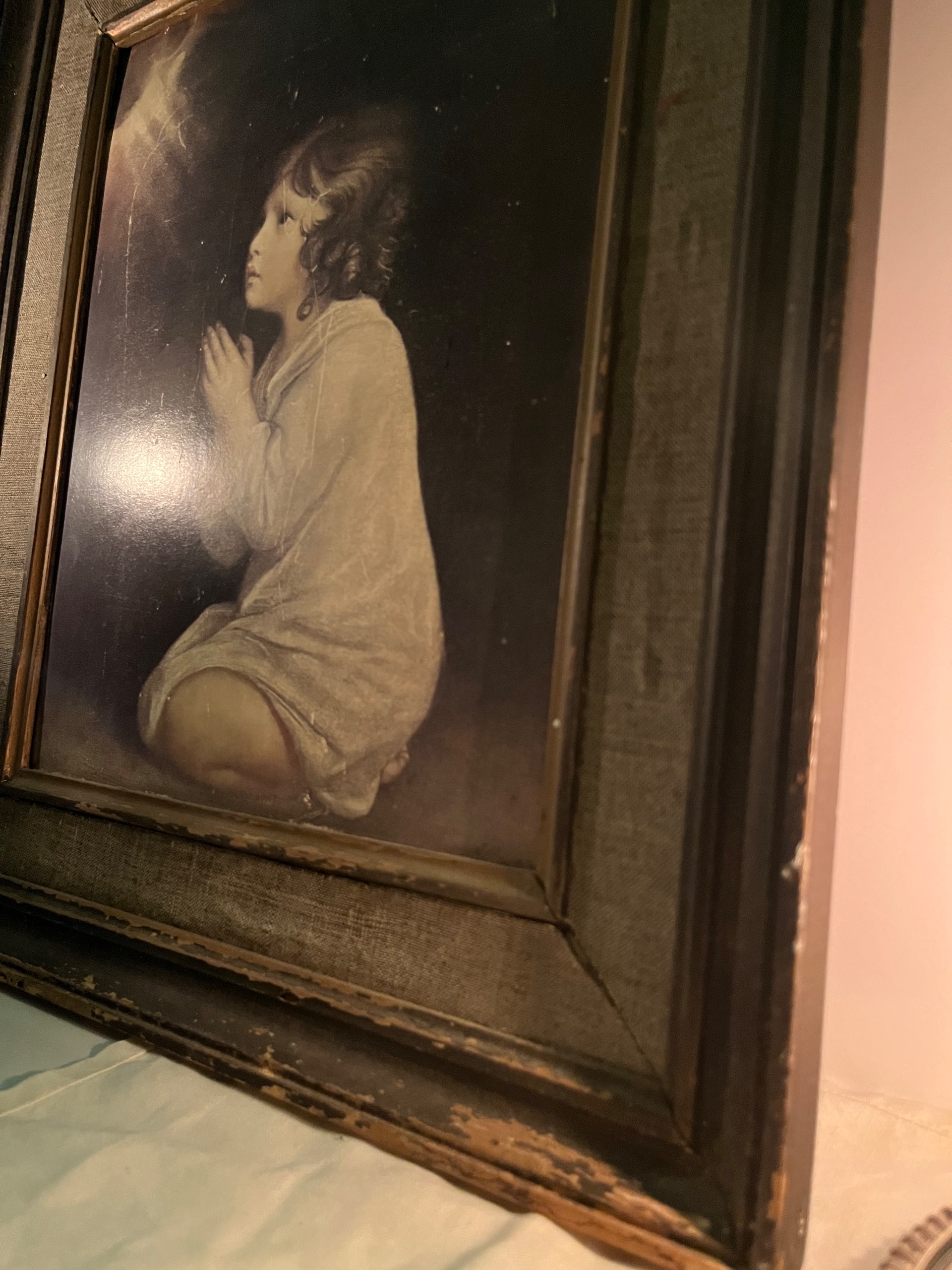 تابلو عکس بسیار قدیمی اروپایی کودک دعا کننده یا معروف به دست های دعا . کار بسیار زیبا و خاص به عنوان دکور و بگ کراند با ابعاد عکس. 23*29