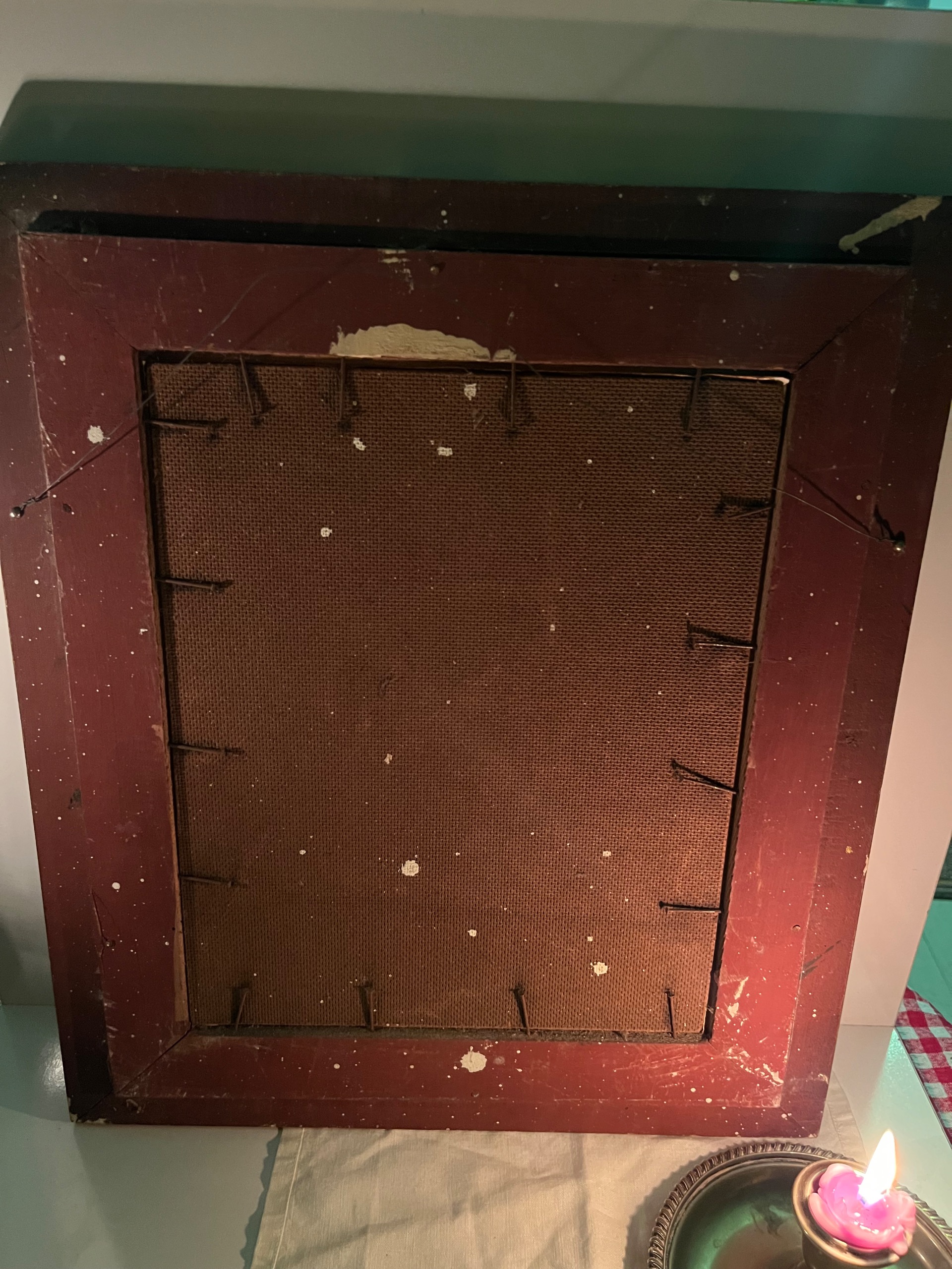 قاب کار چوبی و بسیار و قدیمی همراه با پاسپارته پارچه ای و ابعاد تابلو 37*43