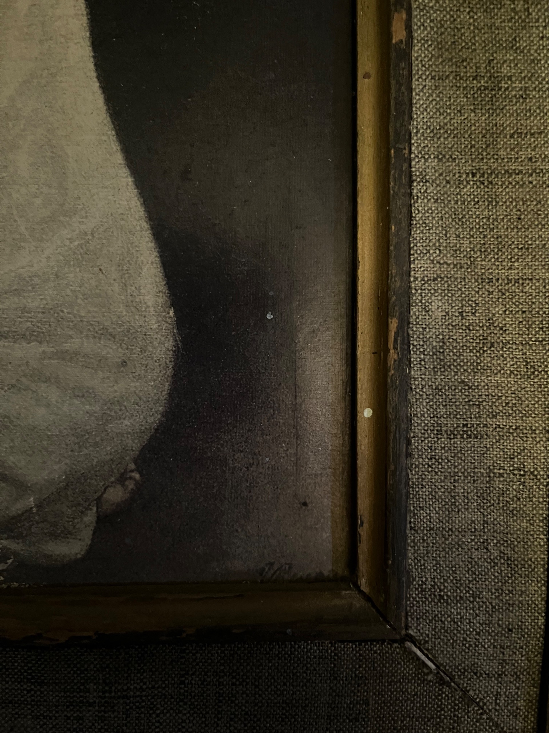 کار به علت استفاده و قدمت هم عکس دارای قسمتهایی خط و خش و هم قاب قسمت هایی از چوب کار خورده شده