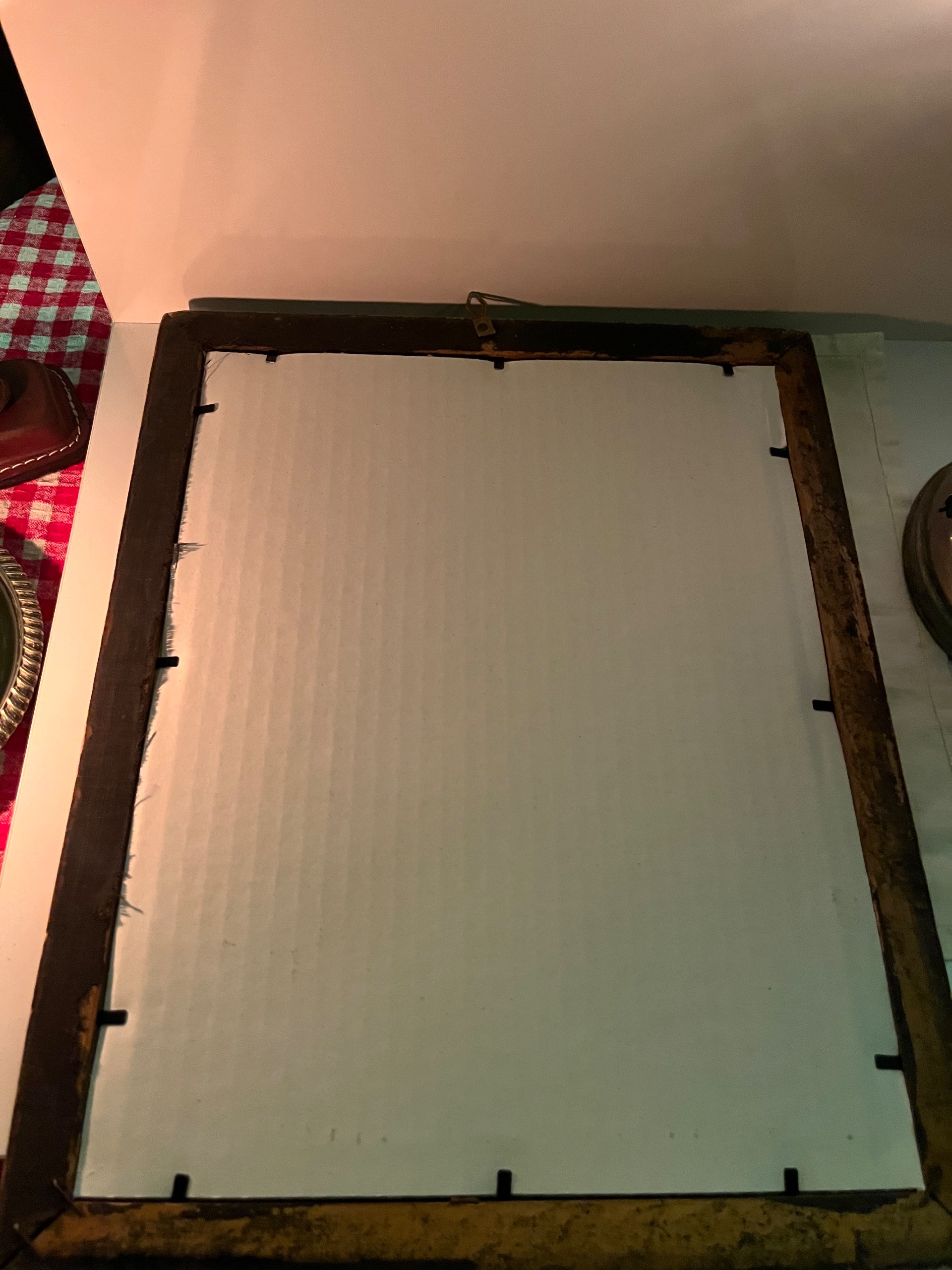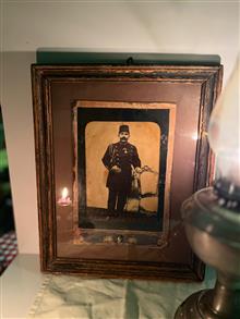 قاب کارهم چوبی و بسیار قدیمی اما متعلق به خود عکس نیست و صرفا جهت نگه داری در آن قرار گرفته و همچنین روی آن تاج هم کارشده است.ابعاد قاب30*38