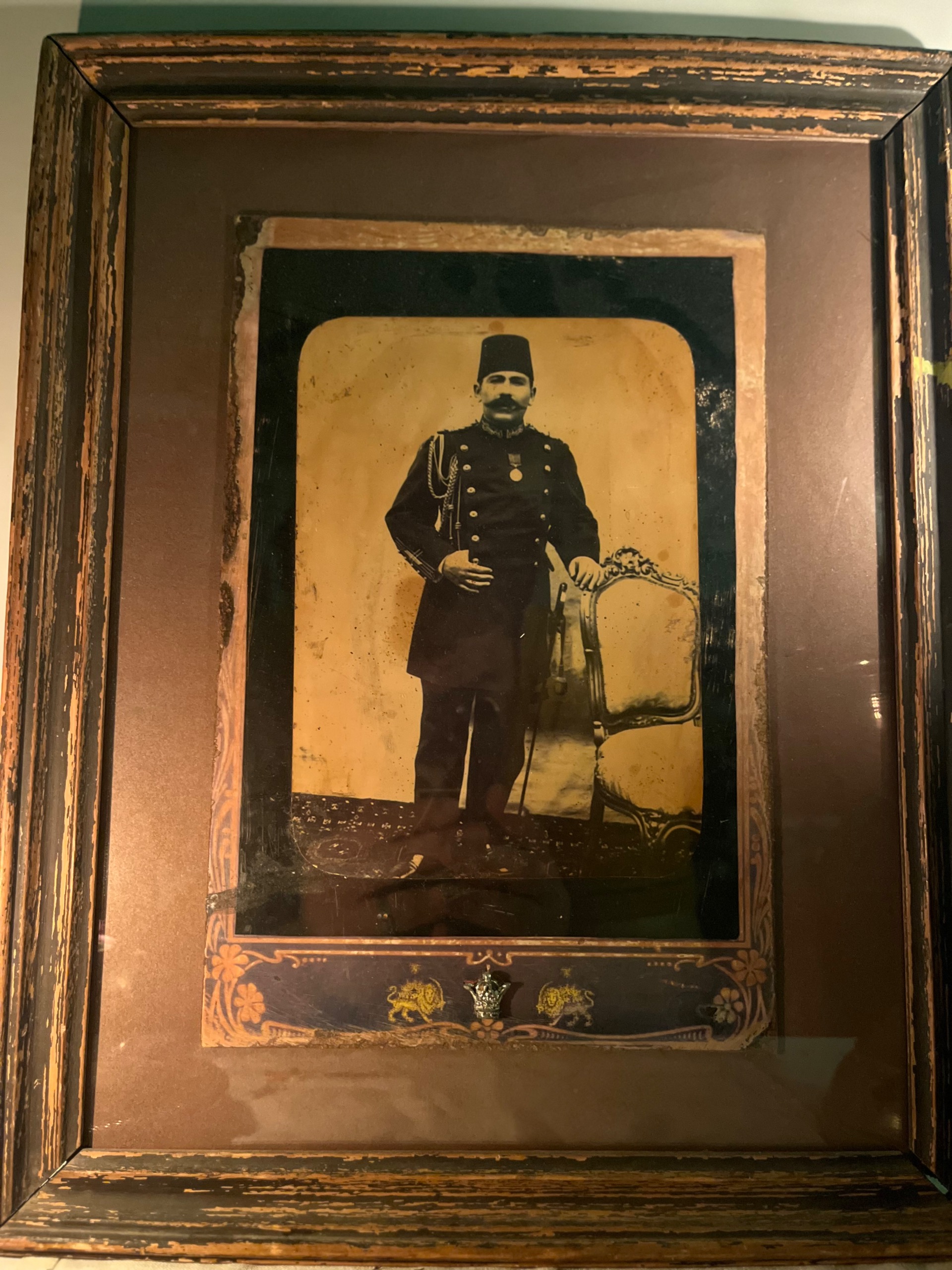 عکس بسیار قدیمی با قدمت قاجاری مرتبط با سفیر عثمانی در دارالخلافه. عکس بسیار خاص و کمیاب و قسمت هایی خط و خش.