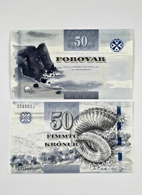 اسکناس فارو 50 کرون بشدت نایاب و زیبای فارو