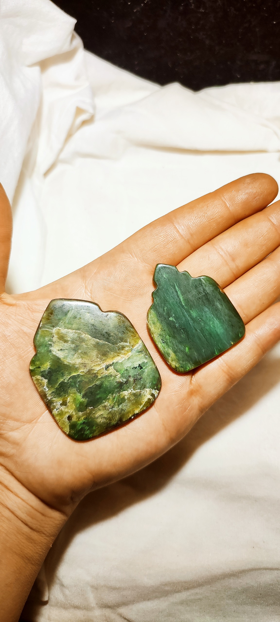 دو عدد یشم معدنی طبیعی کهنه تیموری بسیار کمیاب و خاص عزیزان کلکسیونر از داخل عکس مشخصه هردوعدد بکر و سالم هستن که به سلیقه خودتون میتونید متن و یا هرچیزی که دوست دارین مکتوب و حکاکی کنید که بخاطر اینکه اصالت و ارزش واقعی کار حفظ بشه من همینطور نگه داشتم