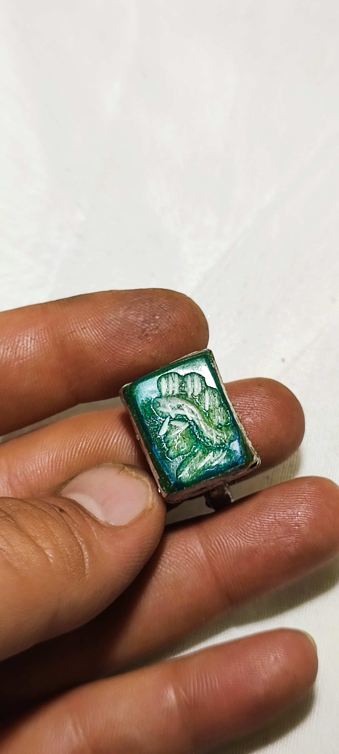 انگشتر زمرد نشان ایلخانی که نقش تیمور نقش بسته نگین بسیار خاص و کیاب زمرد گرید b_که بسیار خاص و زیباست رکاب نقره عیار پایین کار دست تمام بسیار خاص و کمیاب که در اون زمان هرشخص نشان مربوط به مقام و جایگاه خودشو داشته به عنوان مثال سردار جنگ و فرمانده جنگ این نشان استفاده میکردن