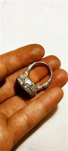 انگشتر نشان ساسانی رکاب دست یاز نقره عیار پایین روکش ردیوم