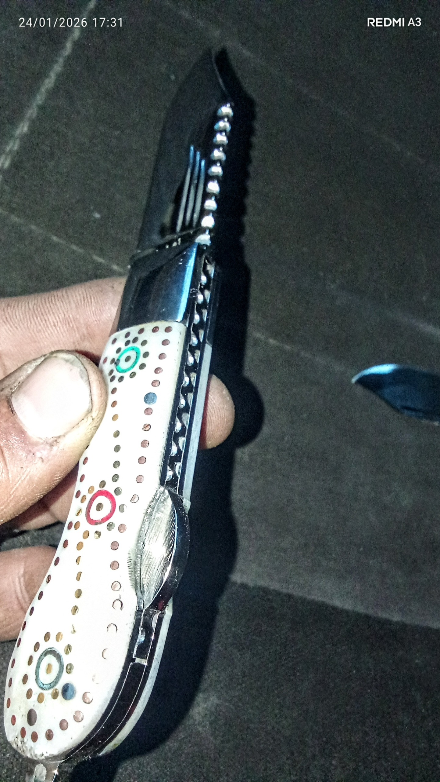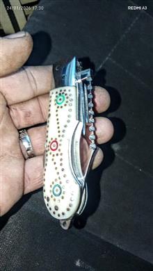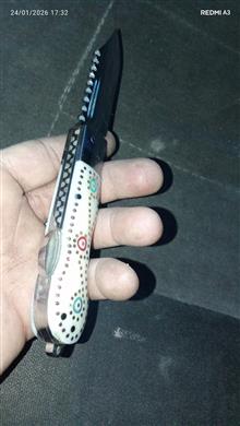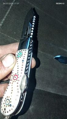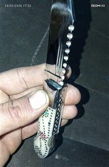 چاقوکلکسیونی ضامنداربابا دسته شاخ تیغ اهنبر21سانت