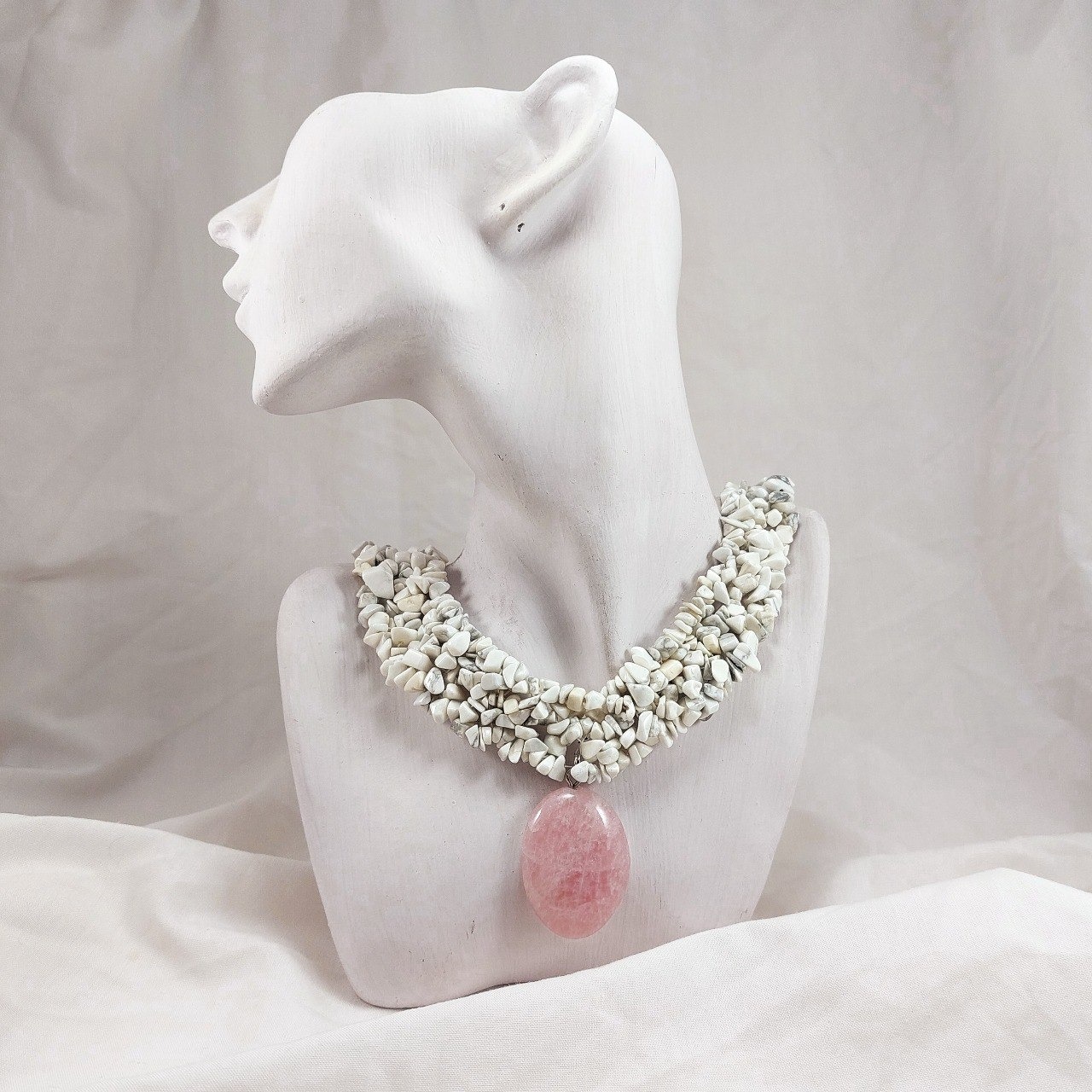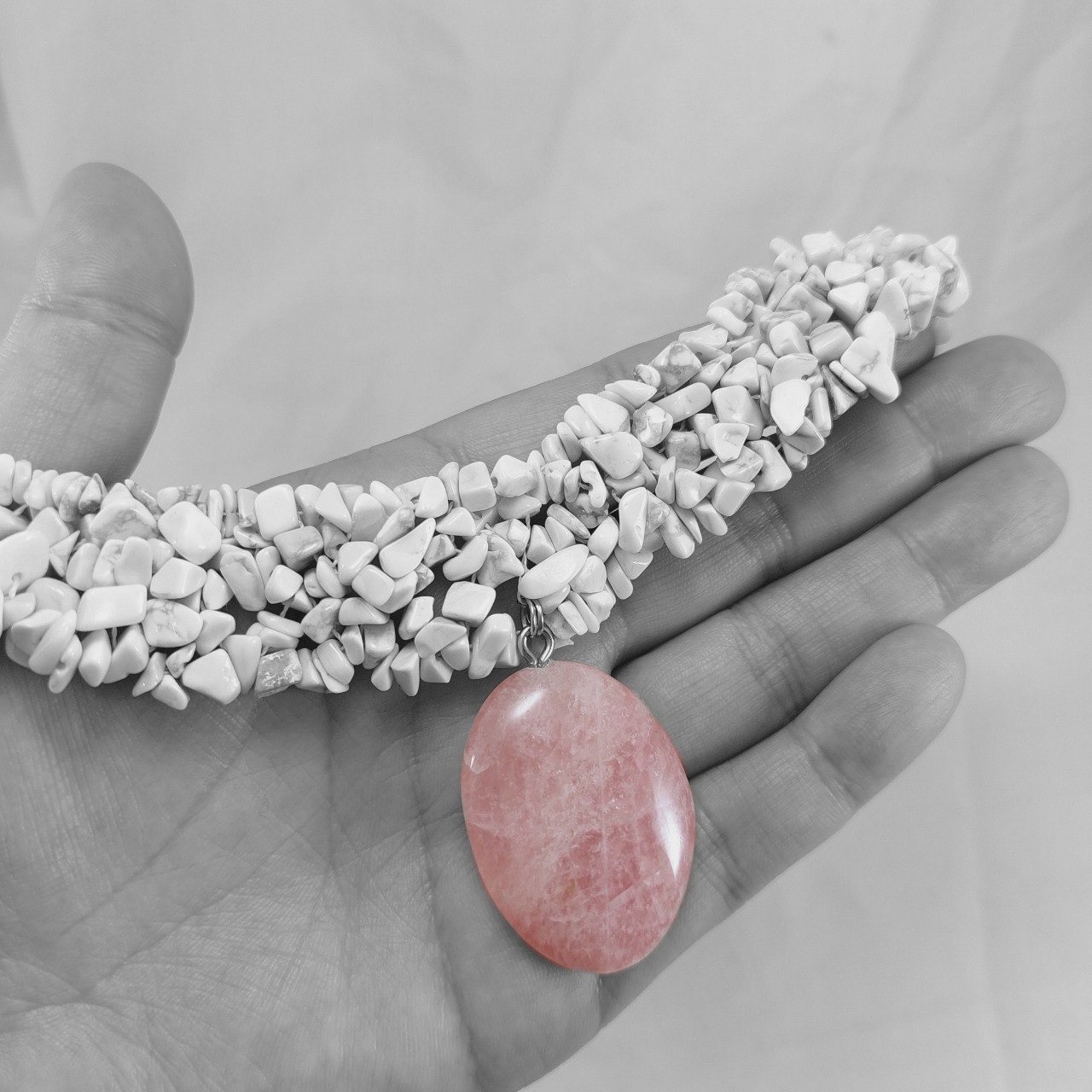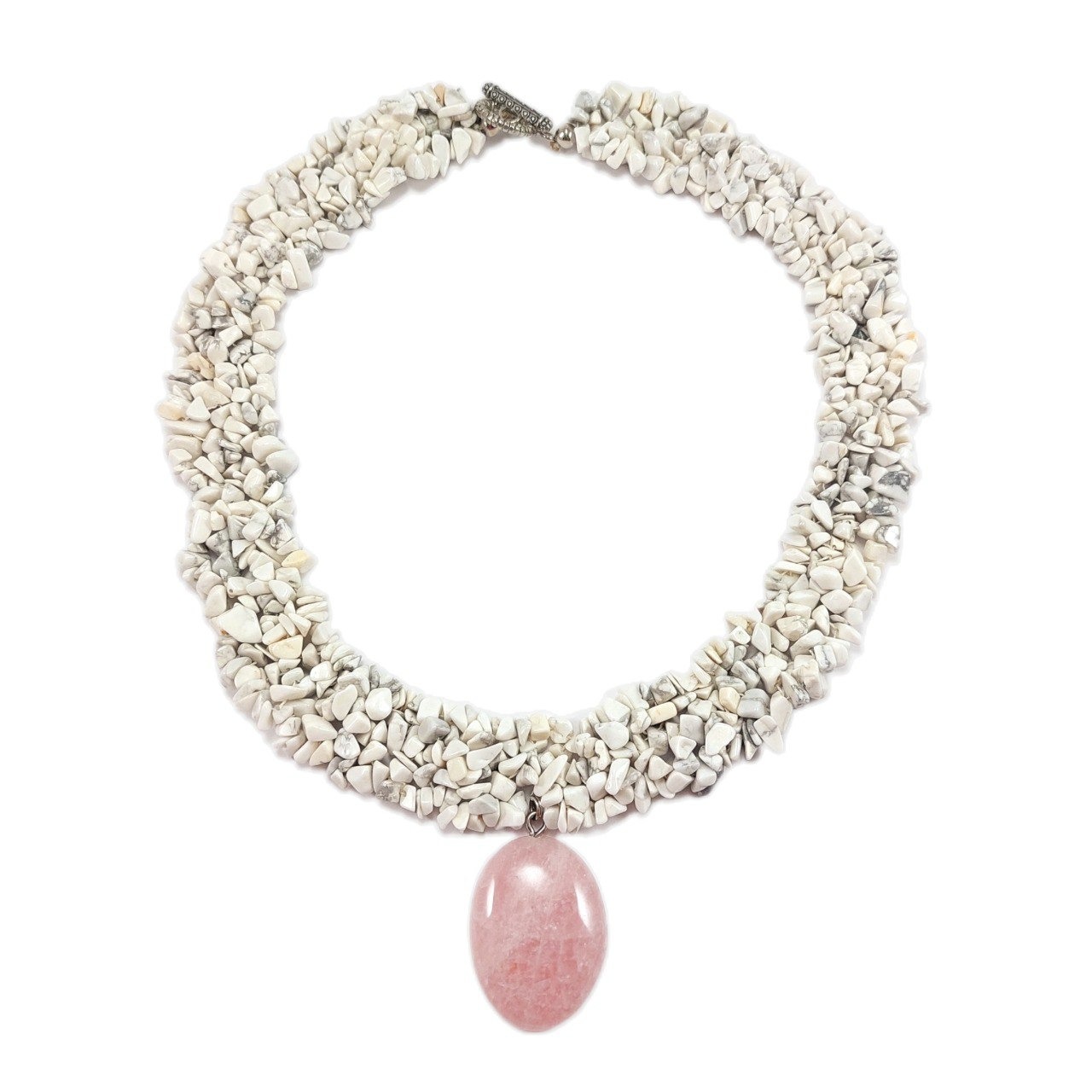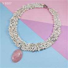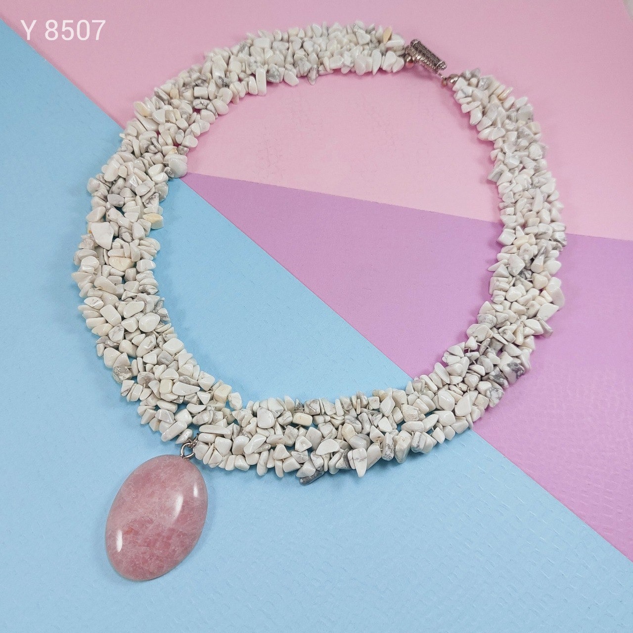 گردنبند هائولیت و کوارتز صورتی کد Y 8507