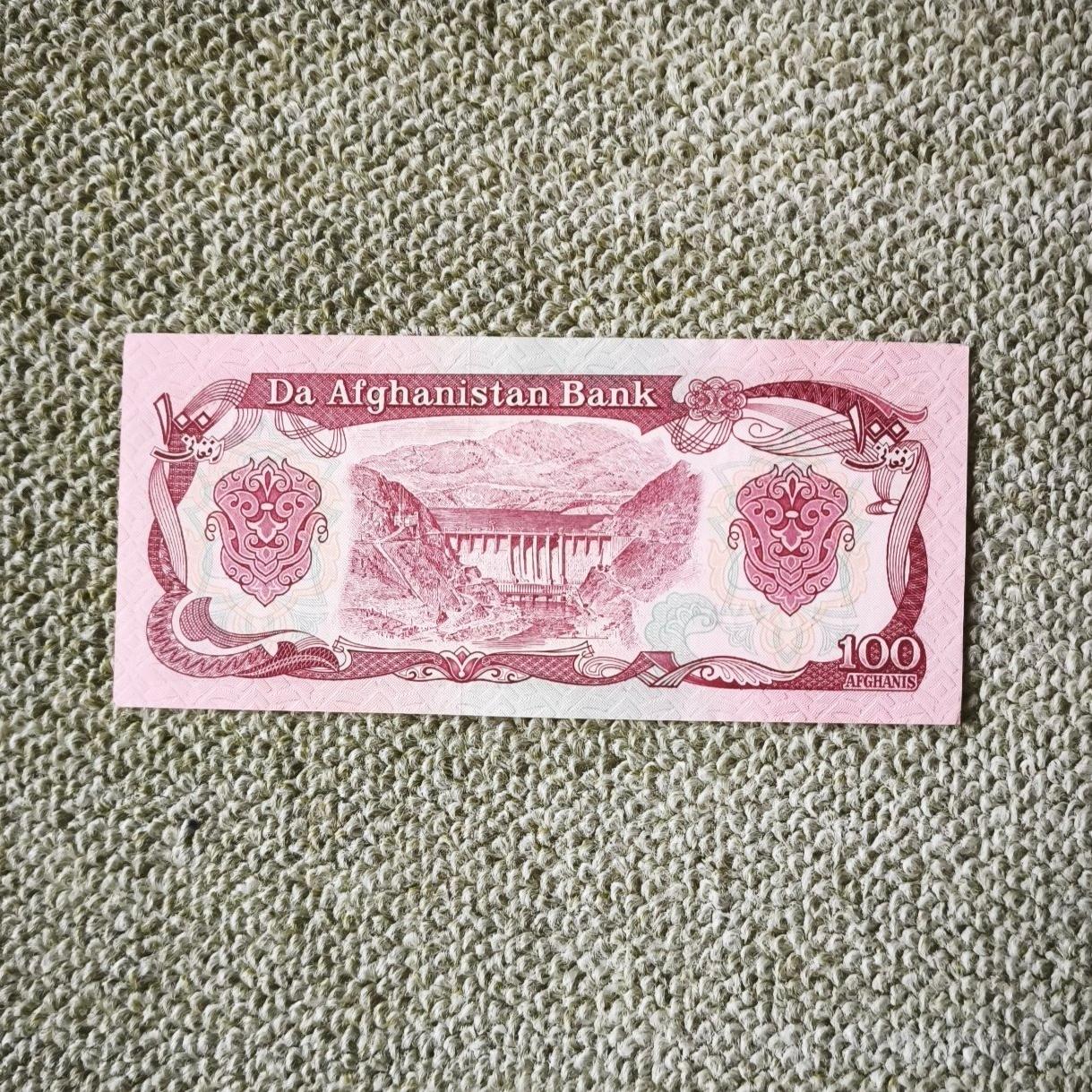 اسکناس 100 افغانی سری جمهوری 1978 میلادی که به صورت بانکی کمیاب است. اسکناس یک شکستگی خیلی ریز در گوشه اسکناس دارد.