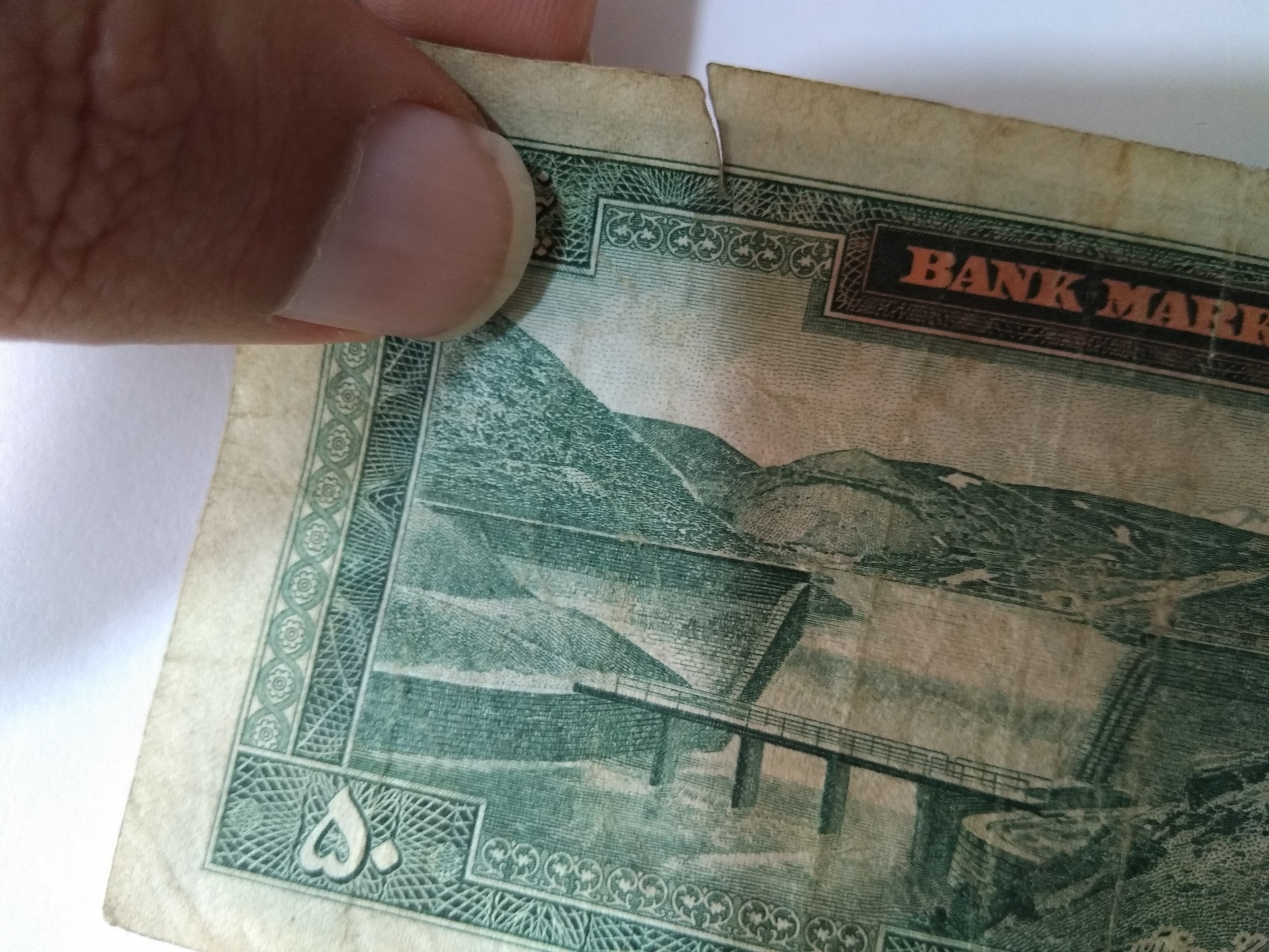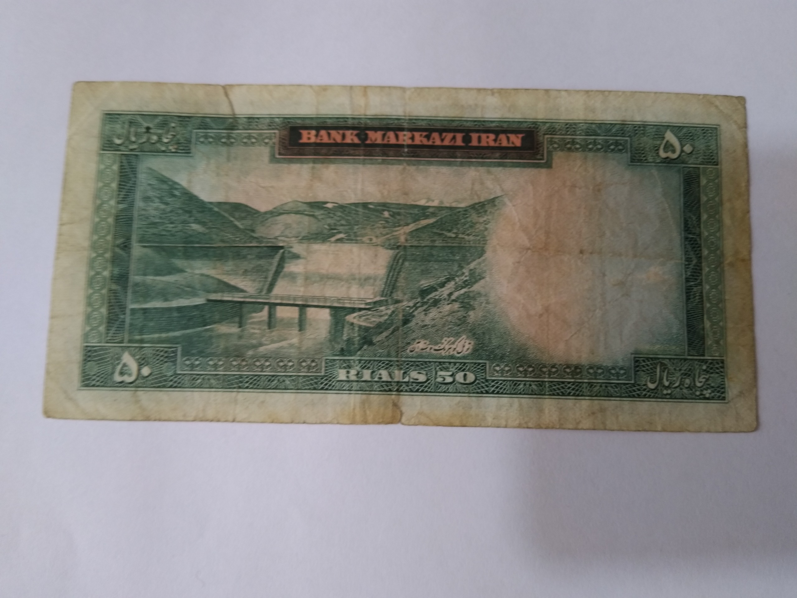 ، اسکناس 50 ریال امضا آموزگار و سمیعی ، زیبا و ارزشمند ، میلیمتری روی حاشیه پارگی دارد، طبق تصویر ارسال می شود، با تشکر
