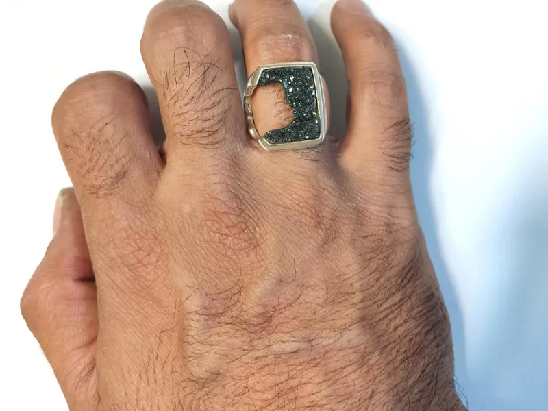 انگشتر نقره دستساز با نگین اولژسیت طراحی خاص از مجموعۀ آنتروپی