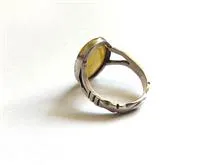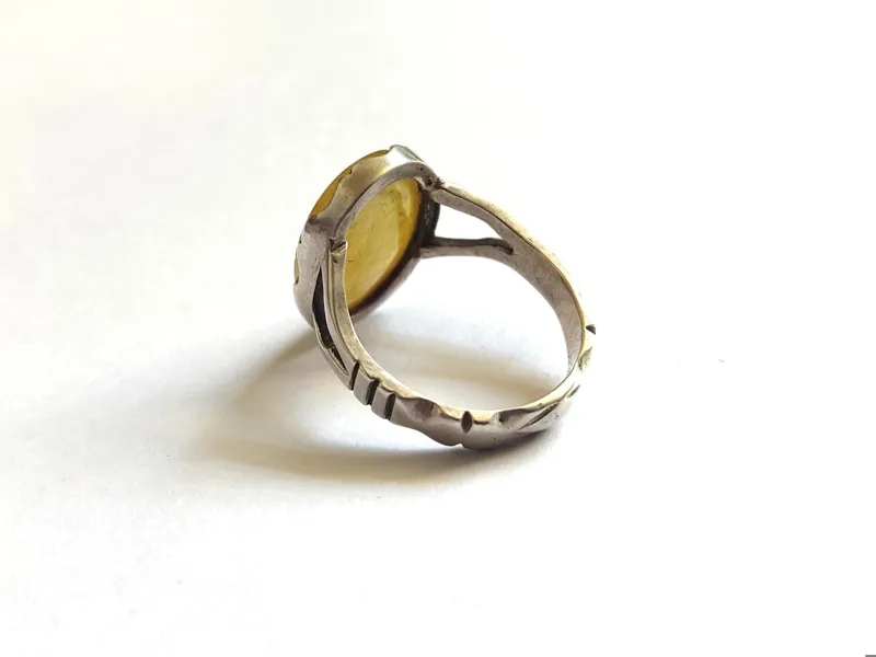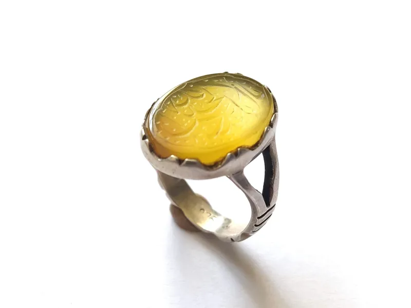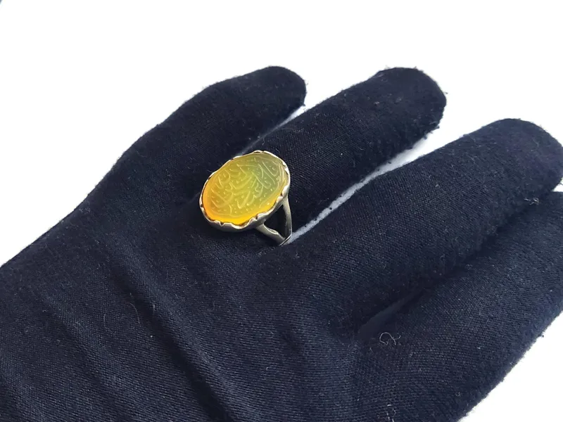 انگشتر نقره دستساز ظریف با عقیق زرد حکاکی دستی