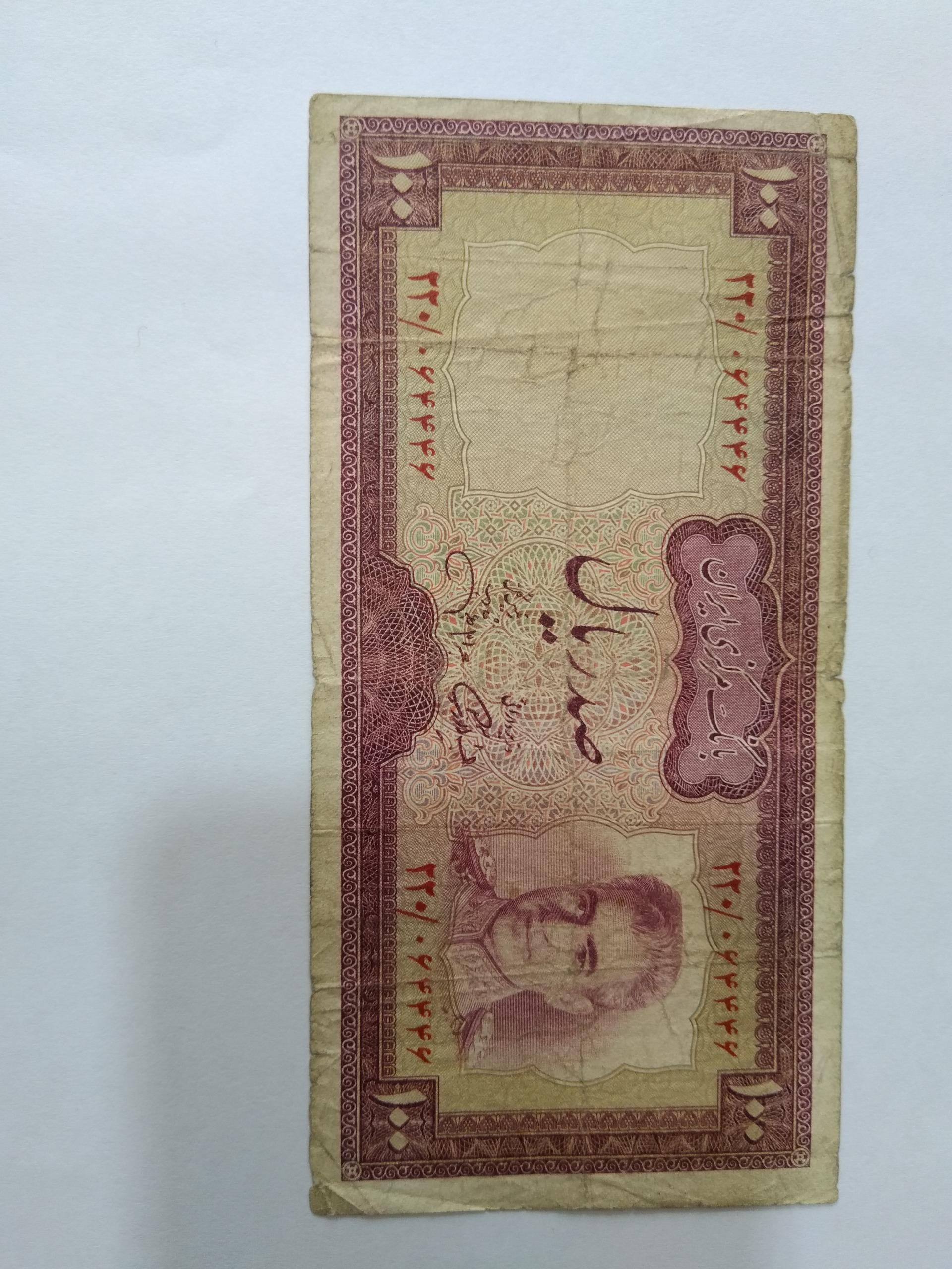 اسکناس 100 ریالی جهانشاهی با شماره سریال زیبا