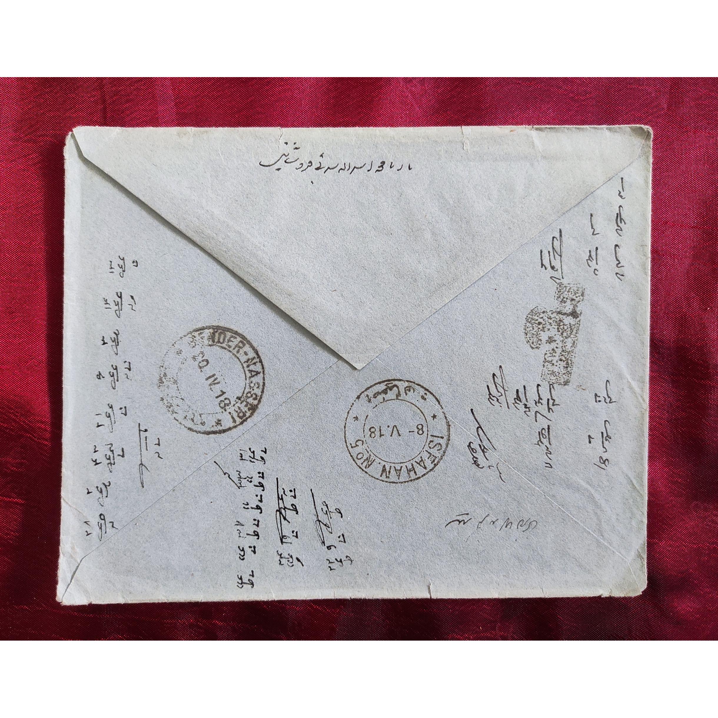 پاکت با مهر خیلی خاص از نوع کرایه دریافت شد (با مهر خیلی نایاب و خاص «پرداخت شد») با مهر ارزشمند ناصری و اصفهان