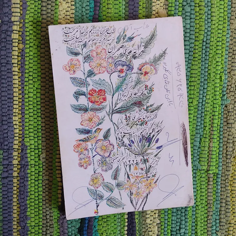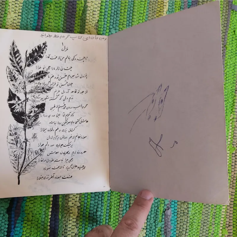 روی جلد، پشت جلد و داخل جلد با خودکار نوشته شده!