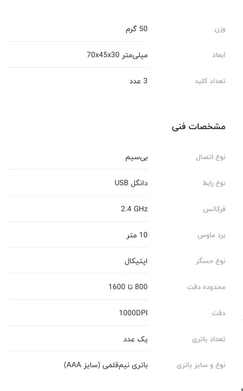 مشخصات کالا