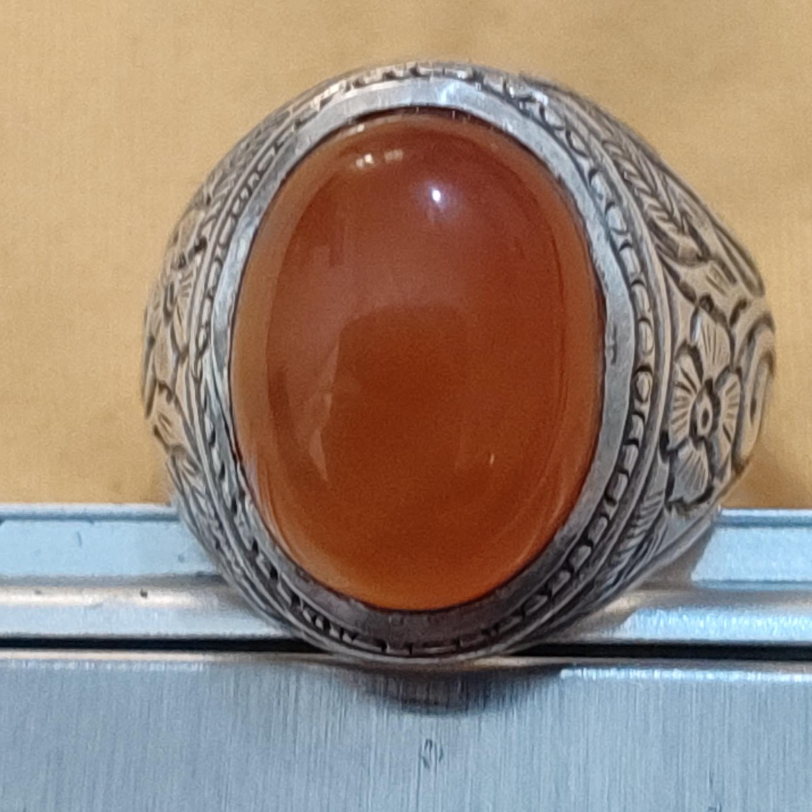 انگشتر نقره مردانه با سنگ عقیق پرتقالی به وزن 10گرمه 39..... . عیار 925.....کالا کپی عکسها میباشد مرجوعی ندارم سوالی داشتید جواب داده میشود لطفاً قبل از خرید استعلام موجودی بگیرین تشکر